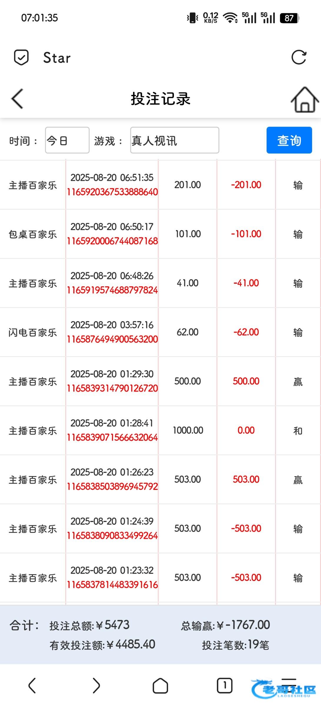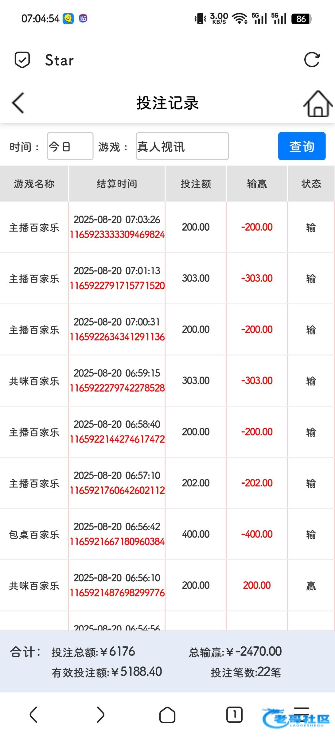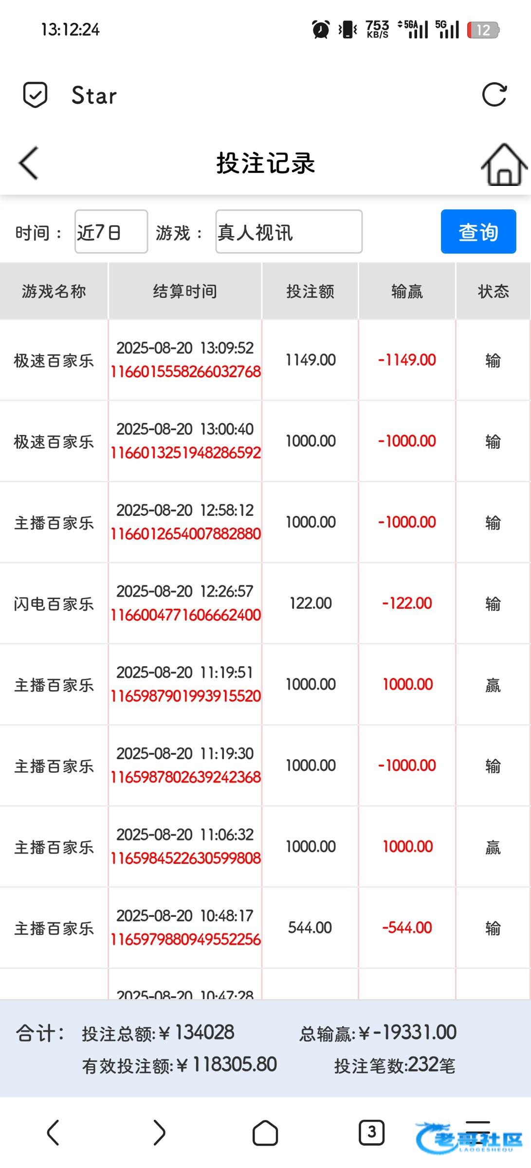 来老哥论坛也有一年多了,玩的也不多,总体算下来好像是盈利的,但也就盈利也就一千多吧总共。因为我不怎么赌,包括你们说...