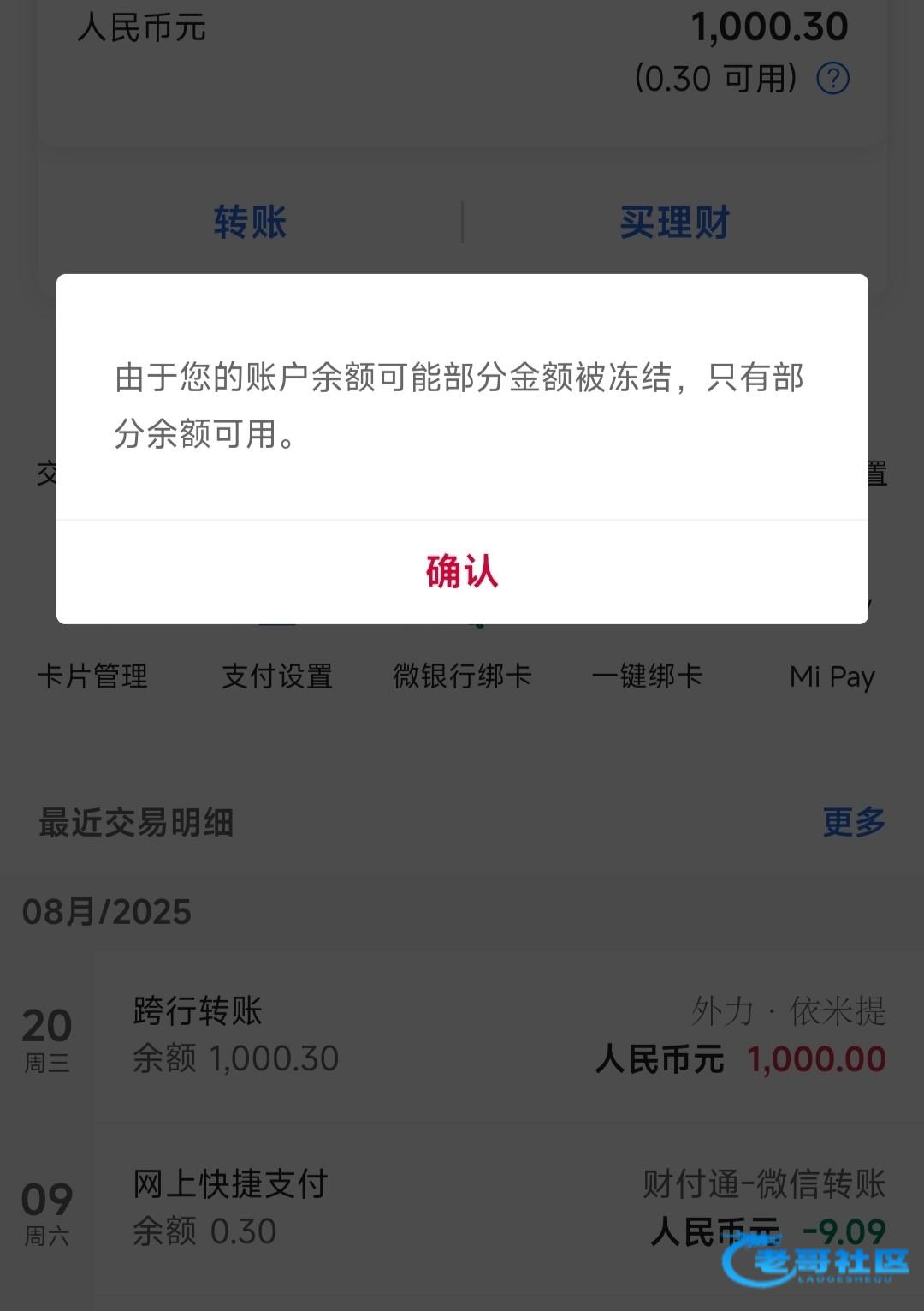 今晚提了一笔1000的到卡里,显示卡没被冻结,就是转过来那笔用不了,问银行客服说是延迟使用但是又不告诉具体时间,有...