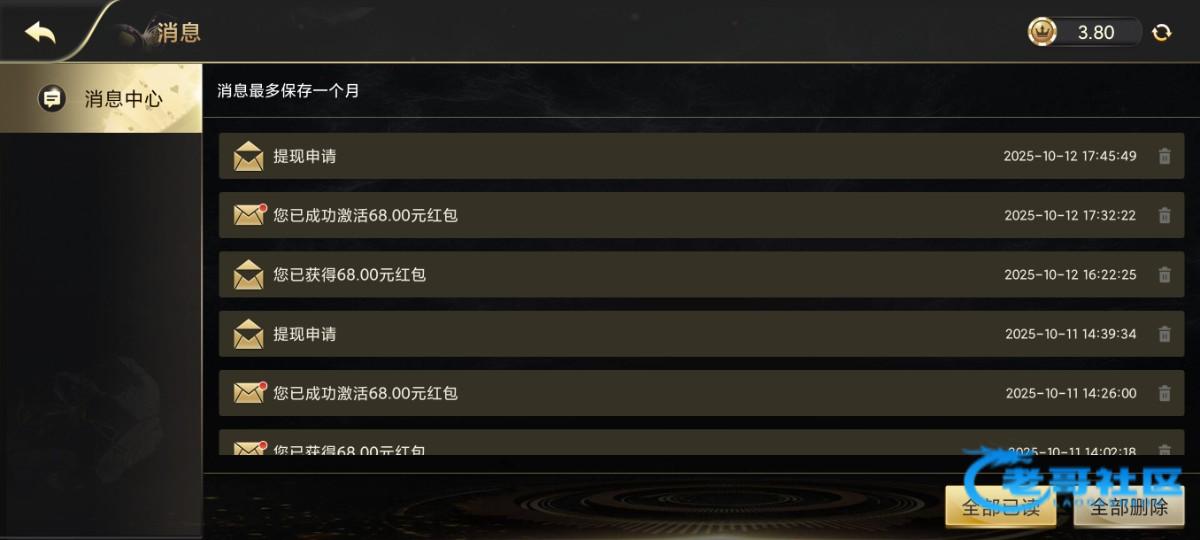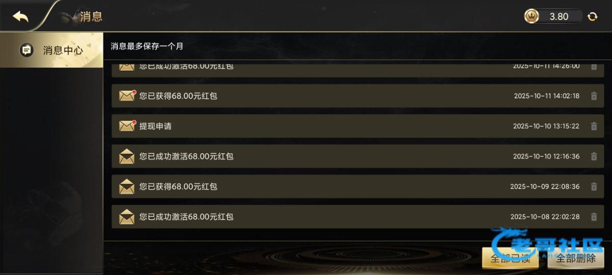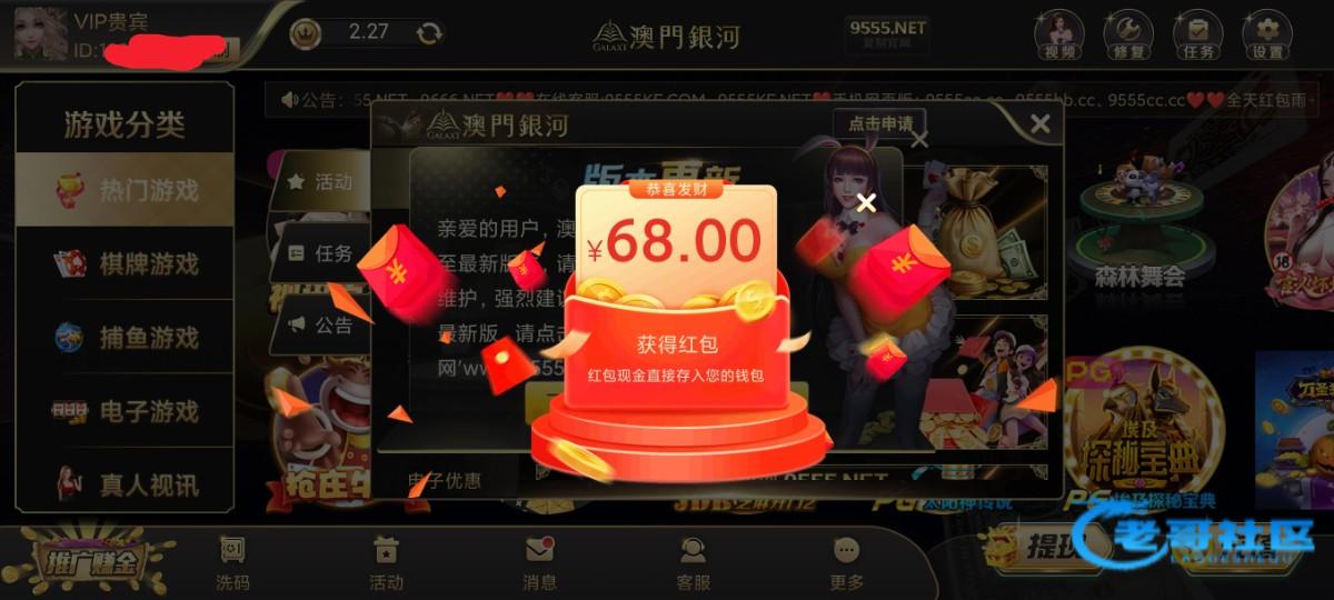 9555.net老哥们,你们送没送,我是从9月26号开始就每天四道红包必须抢,还会出一个充值激活红包68,每天如此...