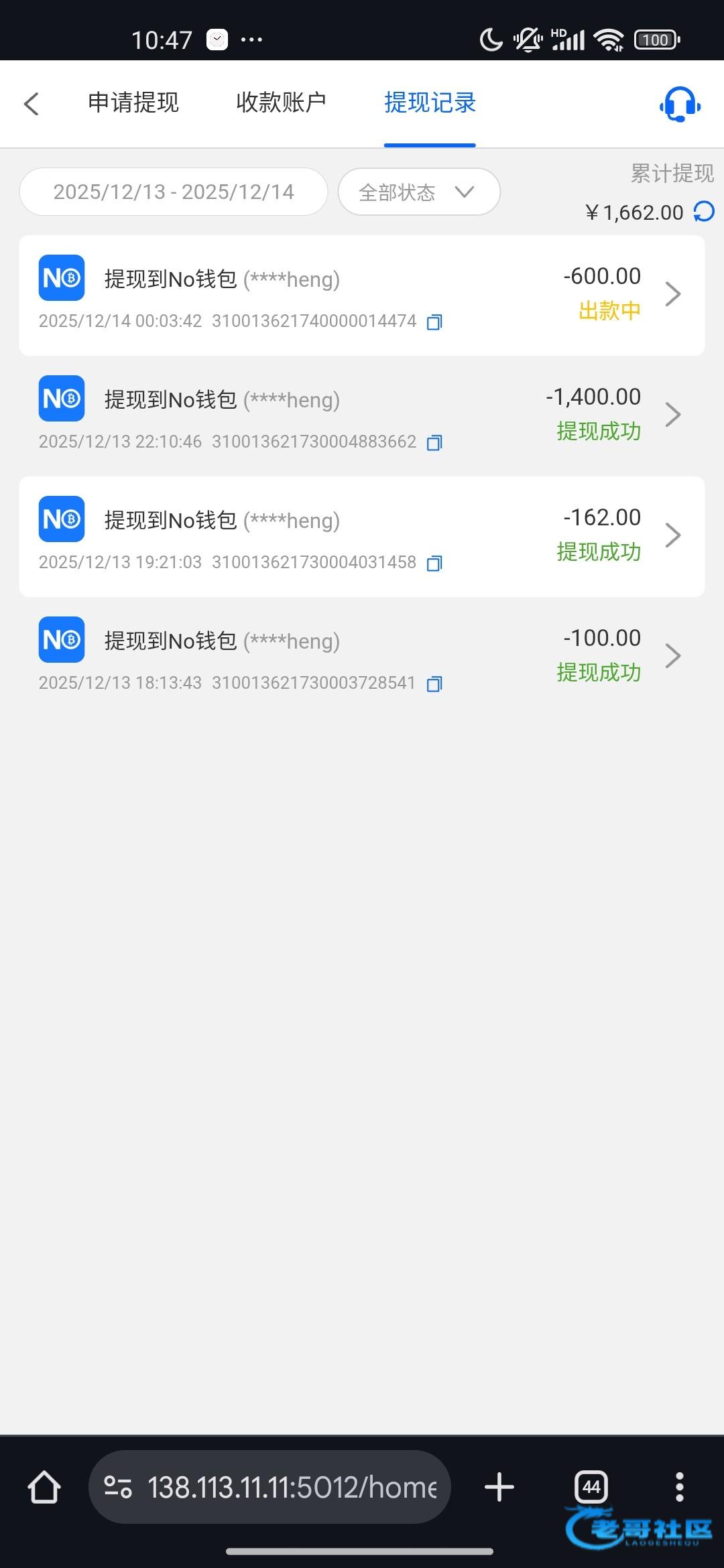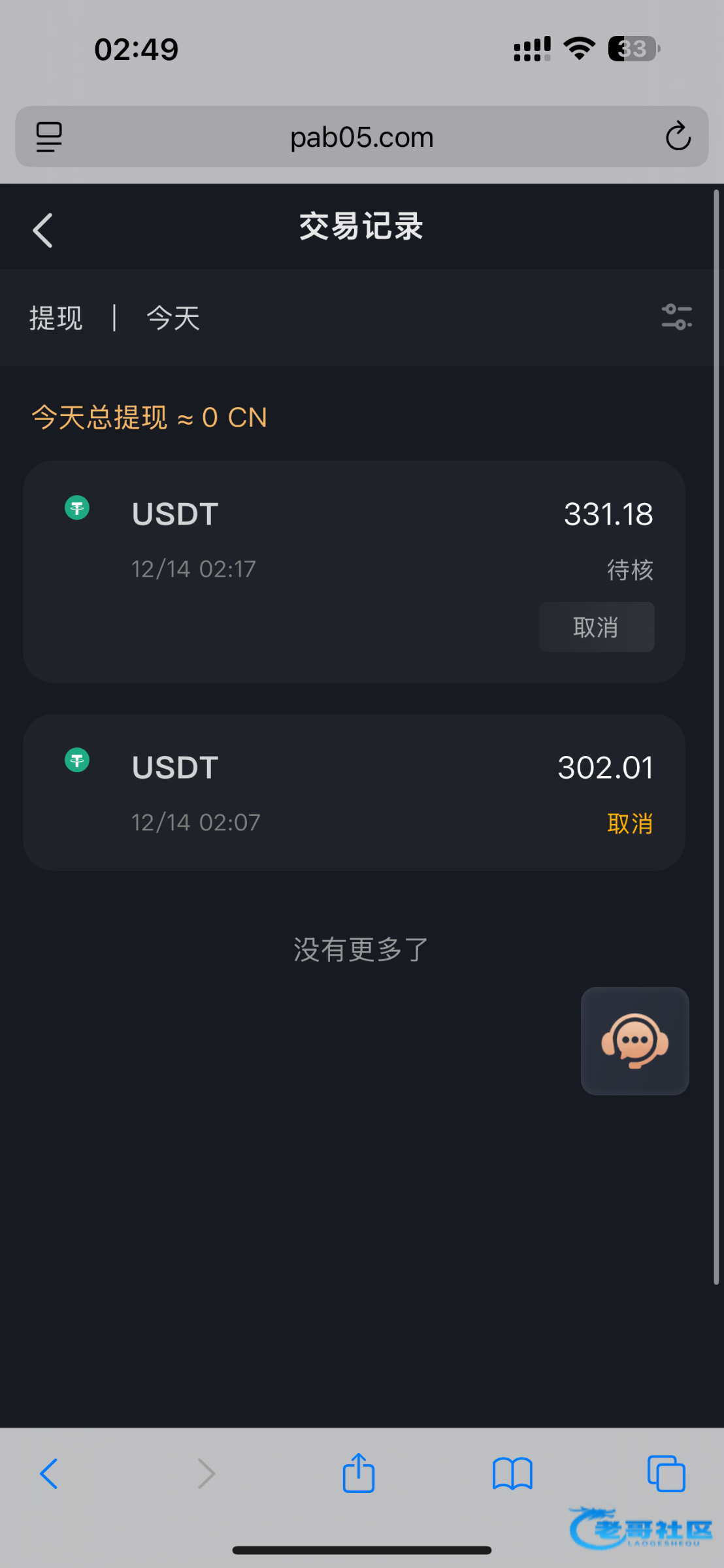 提现俩笔,第一次提现没到账显示到账,第二笔提现二分钟到,问客服就是钱包有波动稍后核实在补发,老哥们自行斟酌吧。提钱...