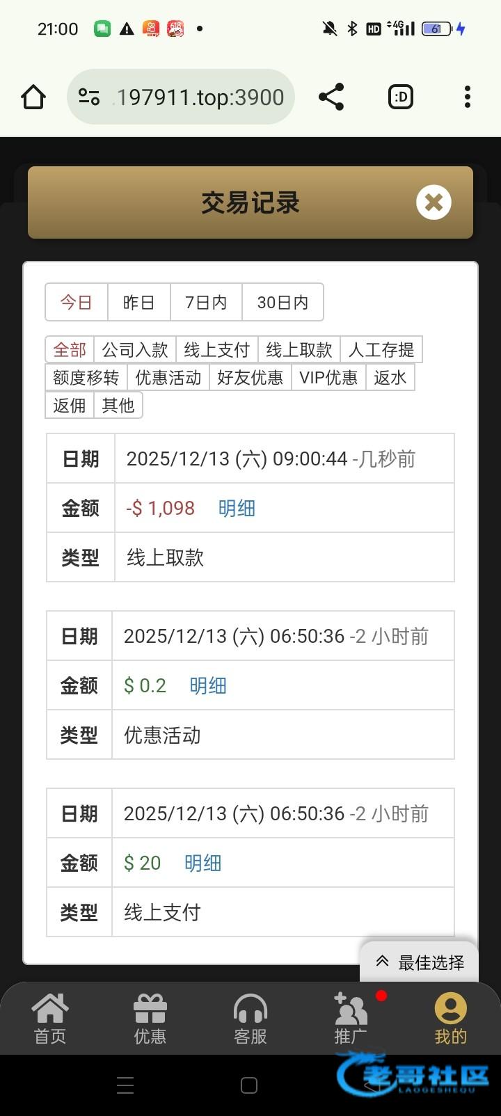 接上贴乐金城电话特邀188打了15倍流水,先后电子PG+真人PA到1900提款客服说的提款最高上限1888,刚开始...