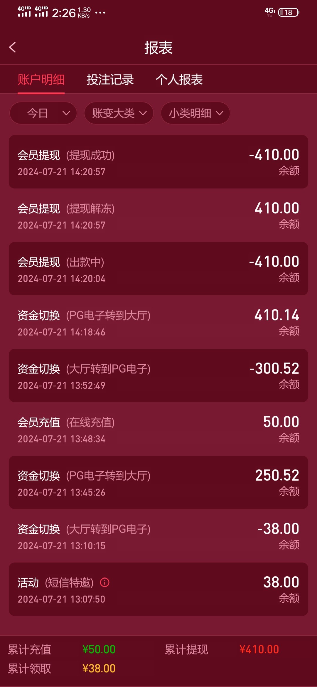 充值50,提现200用了两分钟
