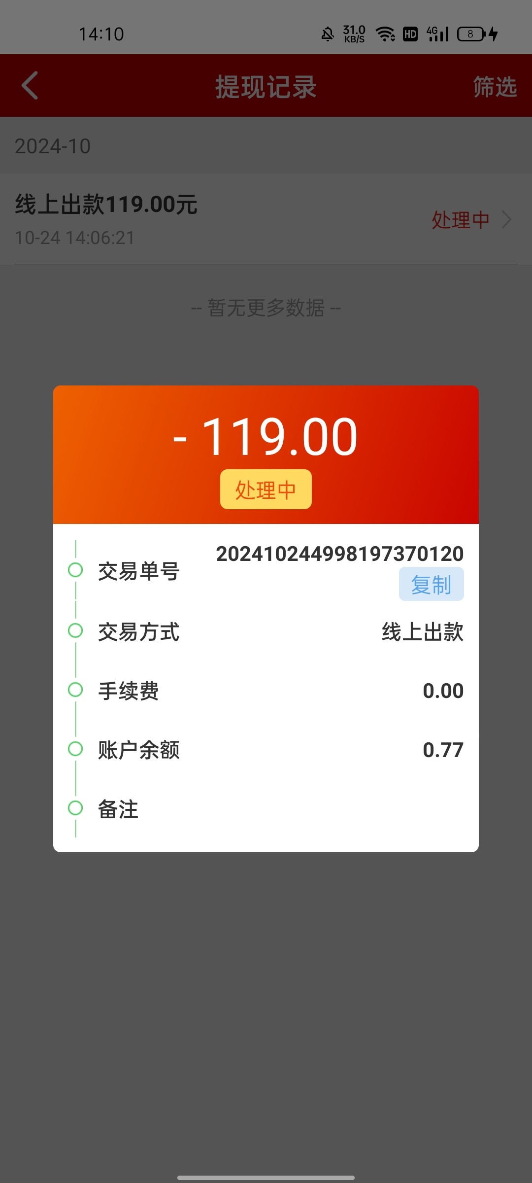 一直在处理中 你提现多久到啊 我都半个小时了