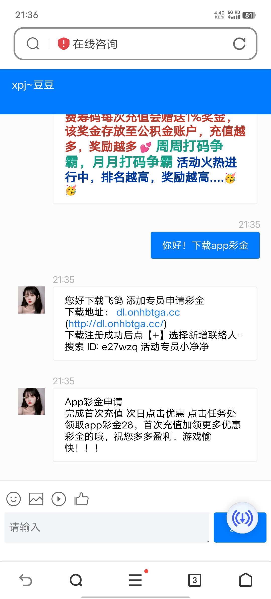 之前有充值过的老哥去碰 新注册的可以在活动中心碰瓷短信特邀8块 我是之前充过100 领了两次28app彩金 碰不到就别逼逼了