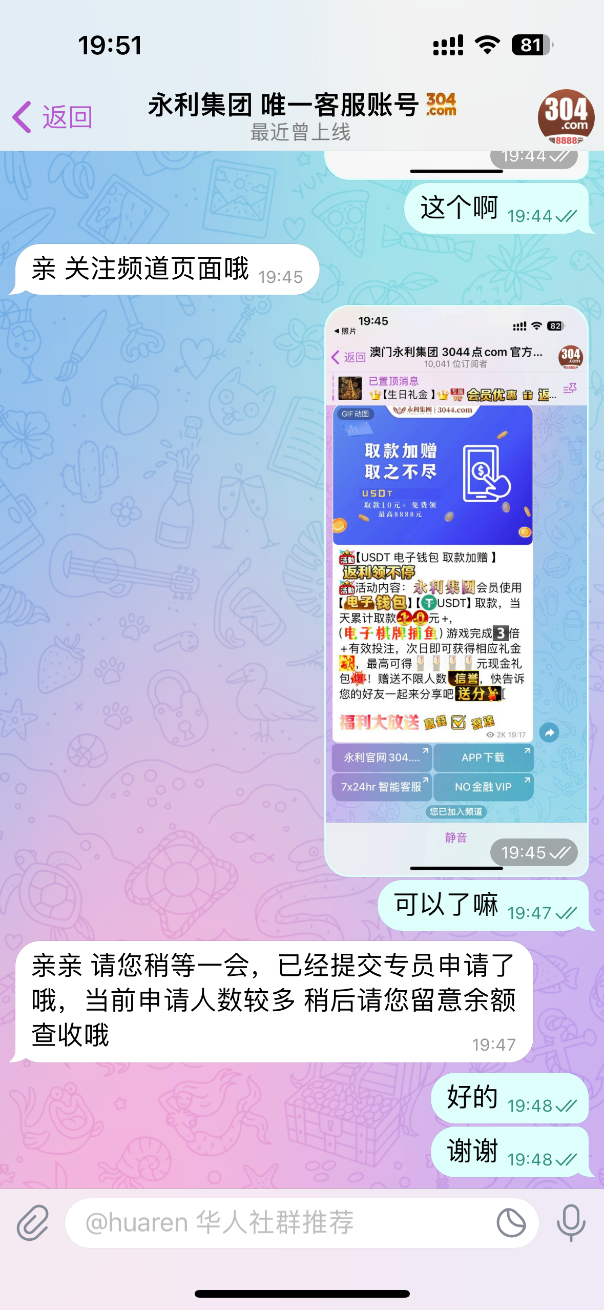 304永利有号的去飞机频道申请彩金 不知道有没有要求 送了我38 地址 3044.com
