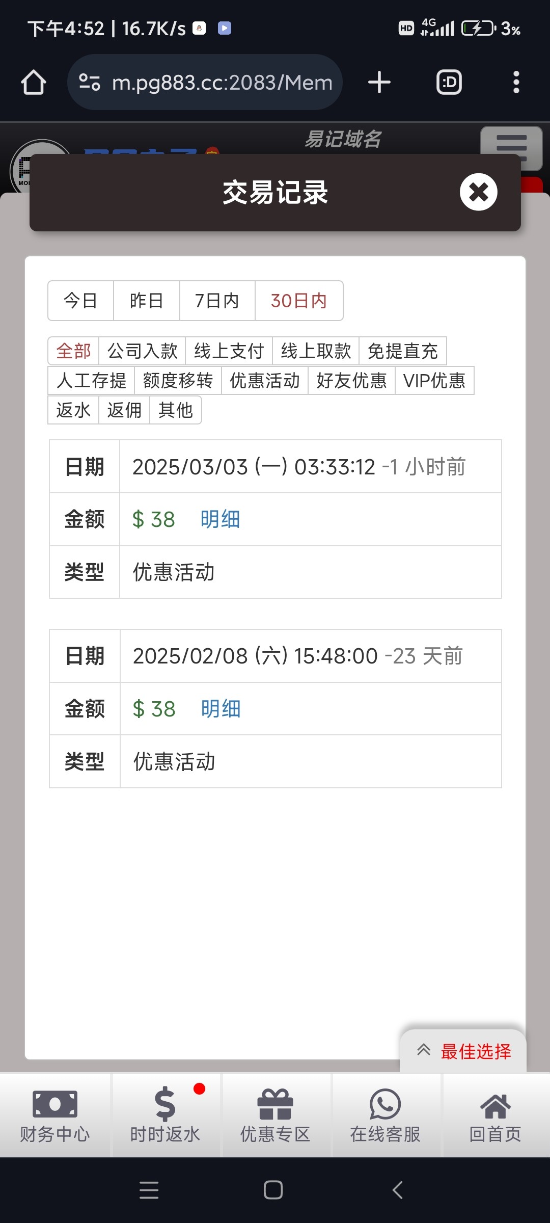 这个平台前年开始玩,第一次打电话送彩金,后面一直玩这个,目前充值七八十个吧,挺杀的这个电子