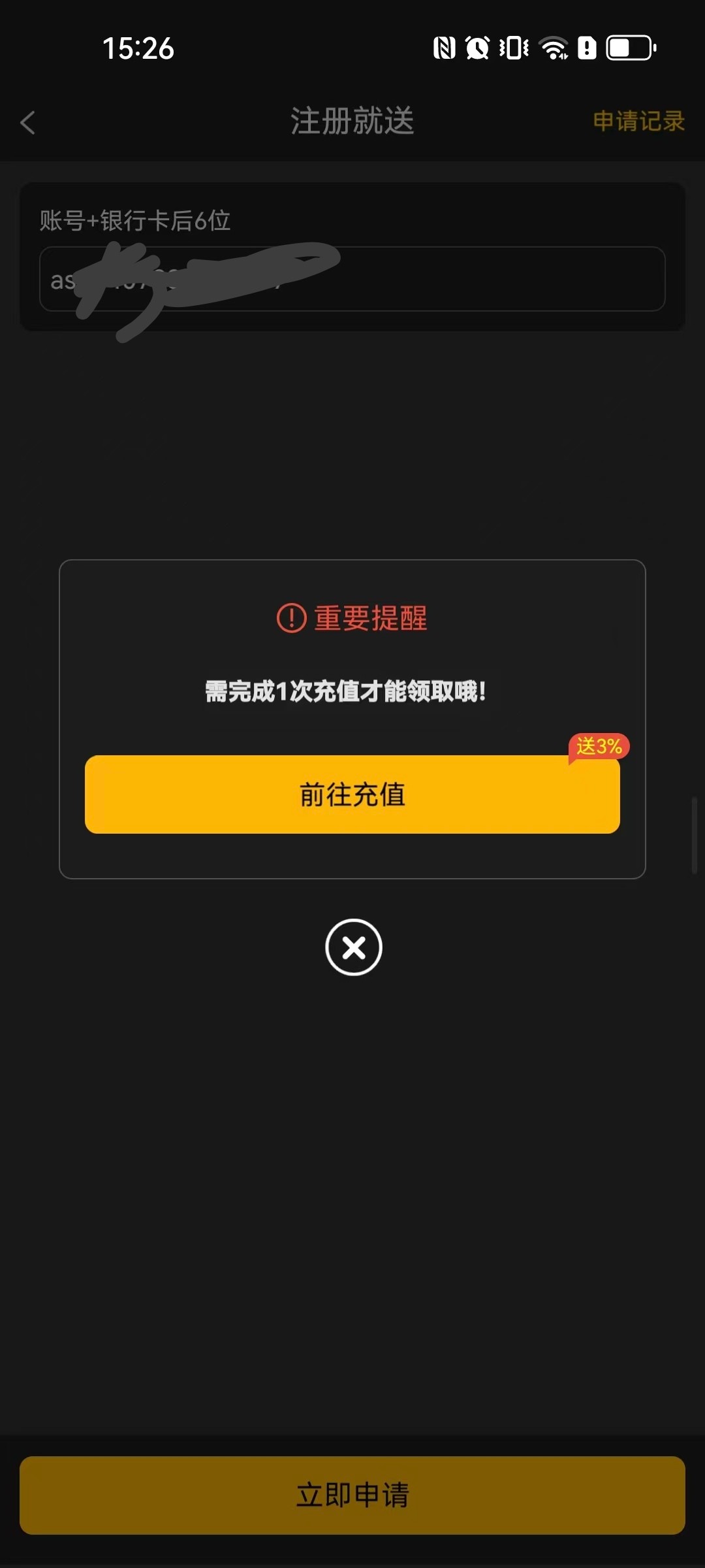 要充值才能申请