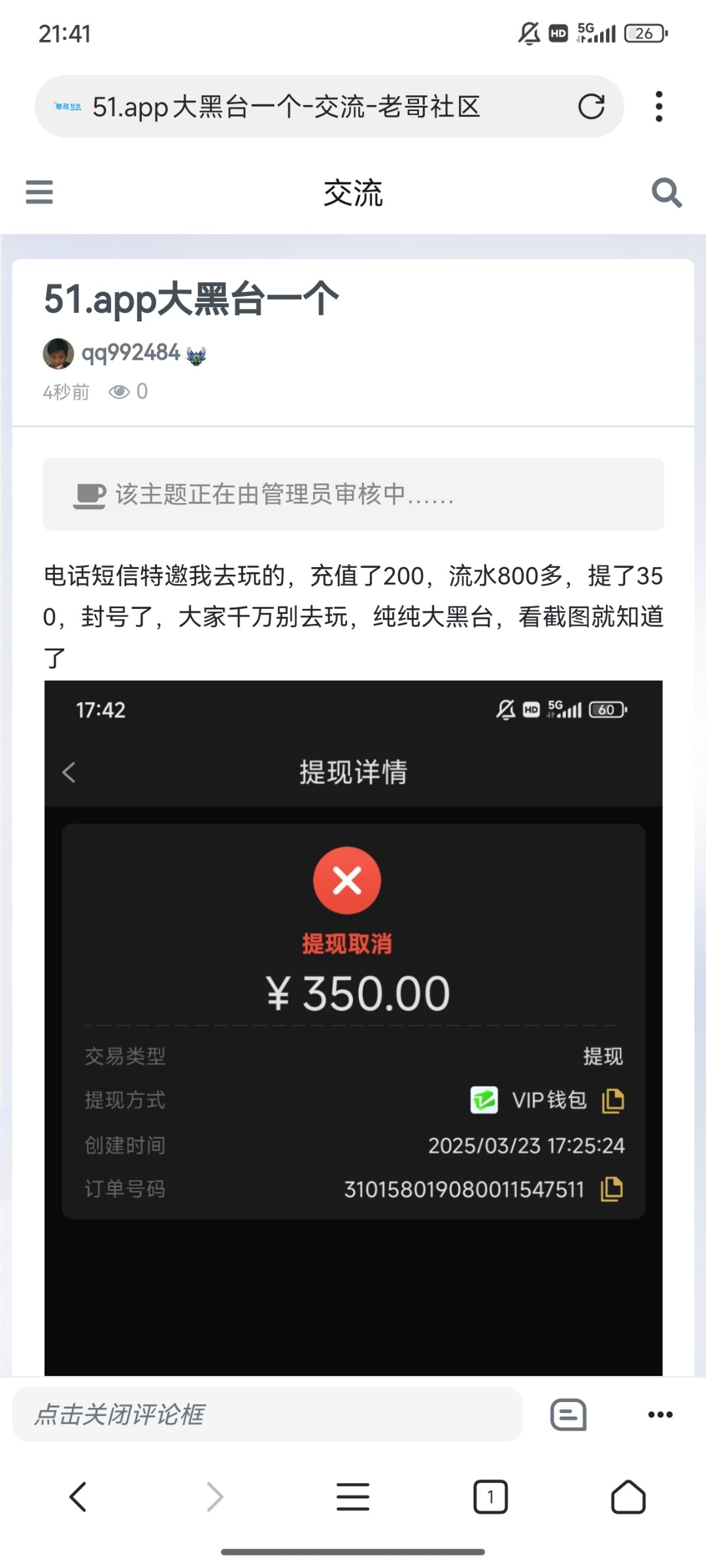 进去就v6,然后看到充58和流水58能拿周红包和月红包。充了76打上1000,提现500试试水几分钟没到。然后来这里搜。还以为遇到黑台,没想到到账了,哈哈美滋滋 地址 51.app