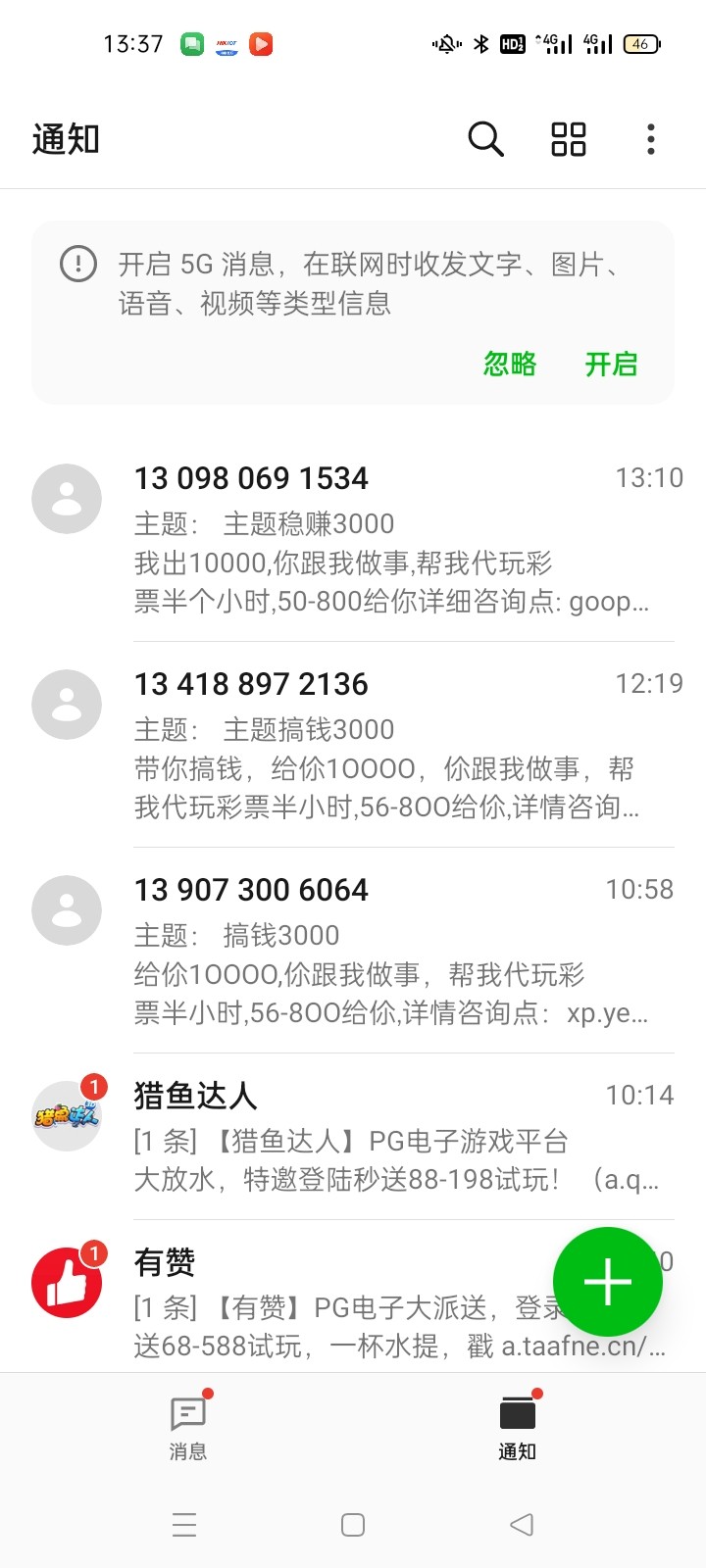 怎么才能收到短信啊,我觉得我玩的也不少了注册的狗庄没有一千也有八百,我从来收不到这种短信, 那种100+58的也没有过,到底是啥原因