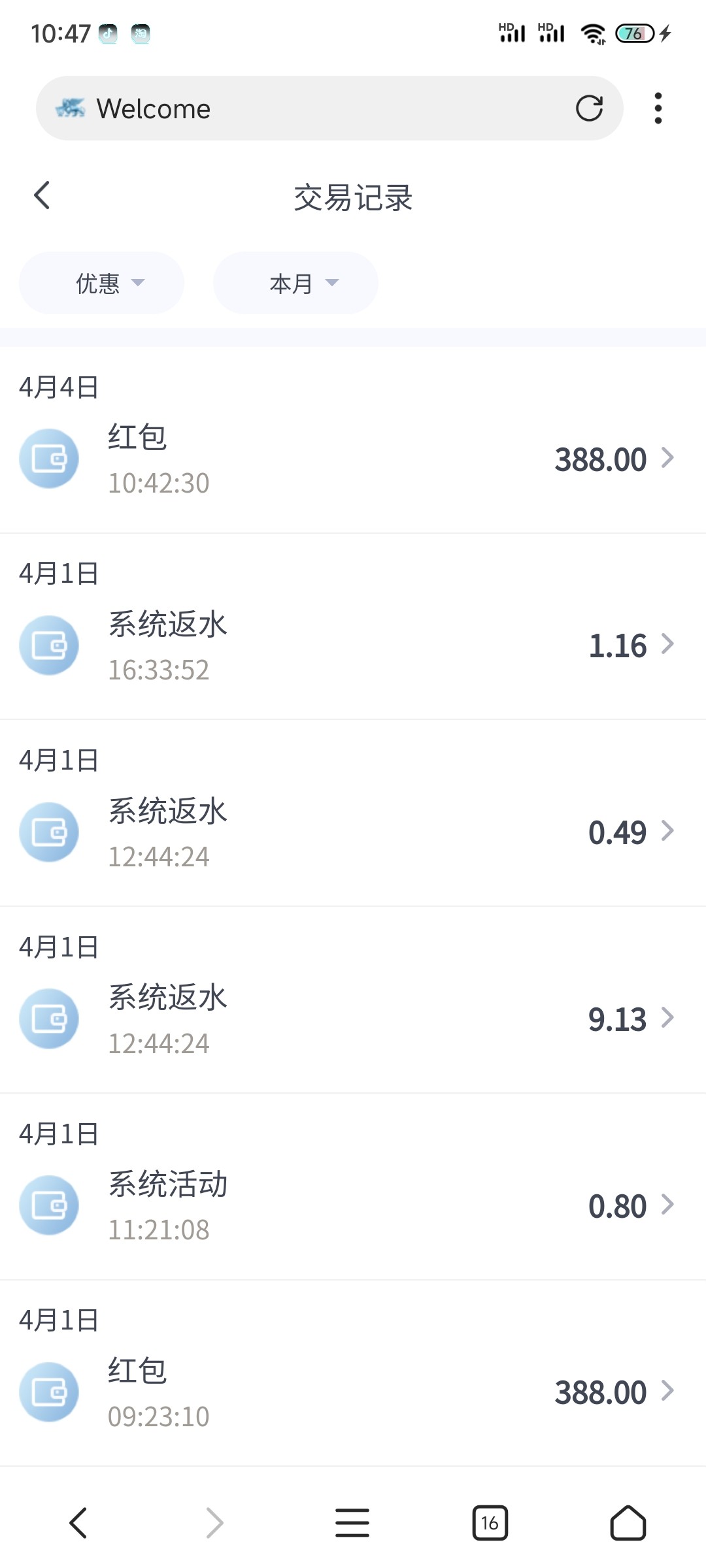 @鱿鱼 ,这个台我可以取款的。别人我不知道。给的388我打了两三倍流水就提了400。后面充300又给388。又提了900。我以前经常玩这个平台。出款不建议用银行卡。用钱包