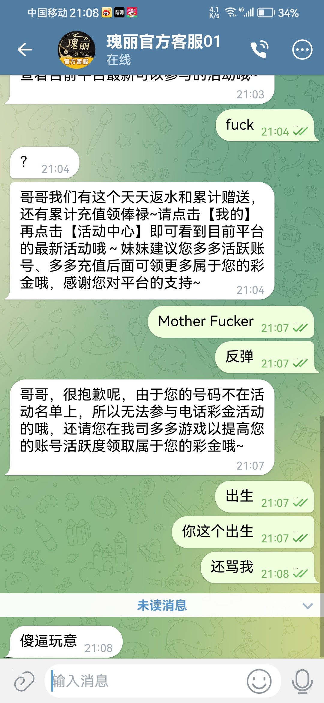 电话说注册送找客服了又说不符合,操