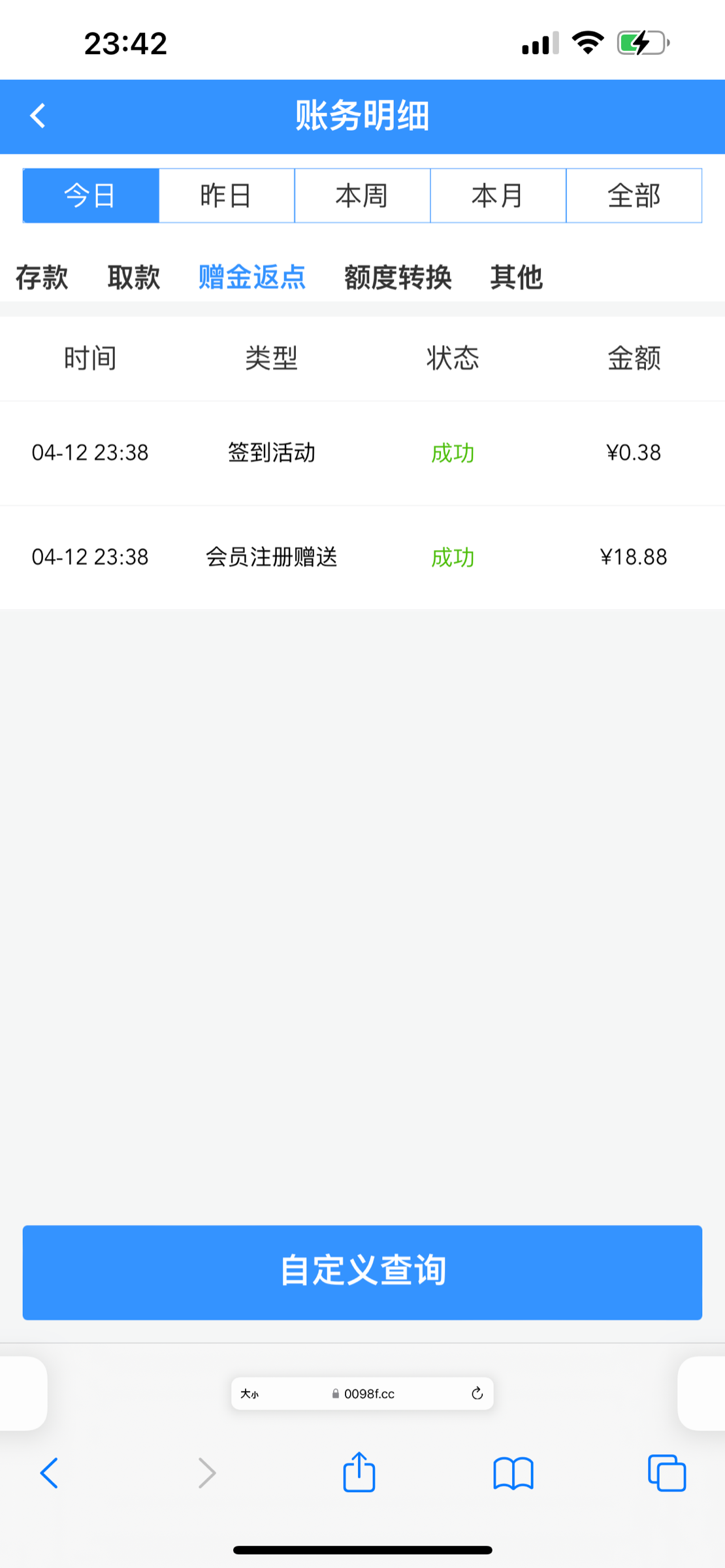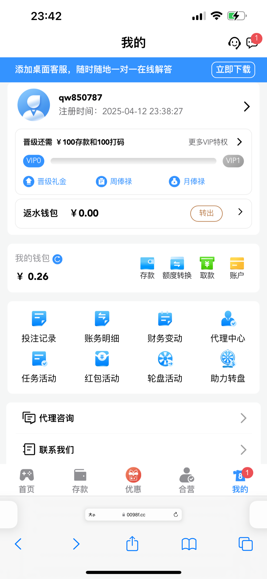 去年年底注册了,有13.88回访彩金,但是还是要中出你