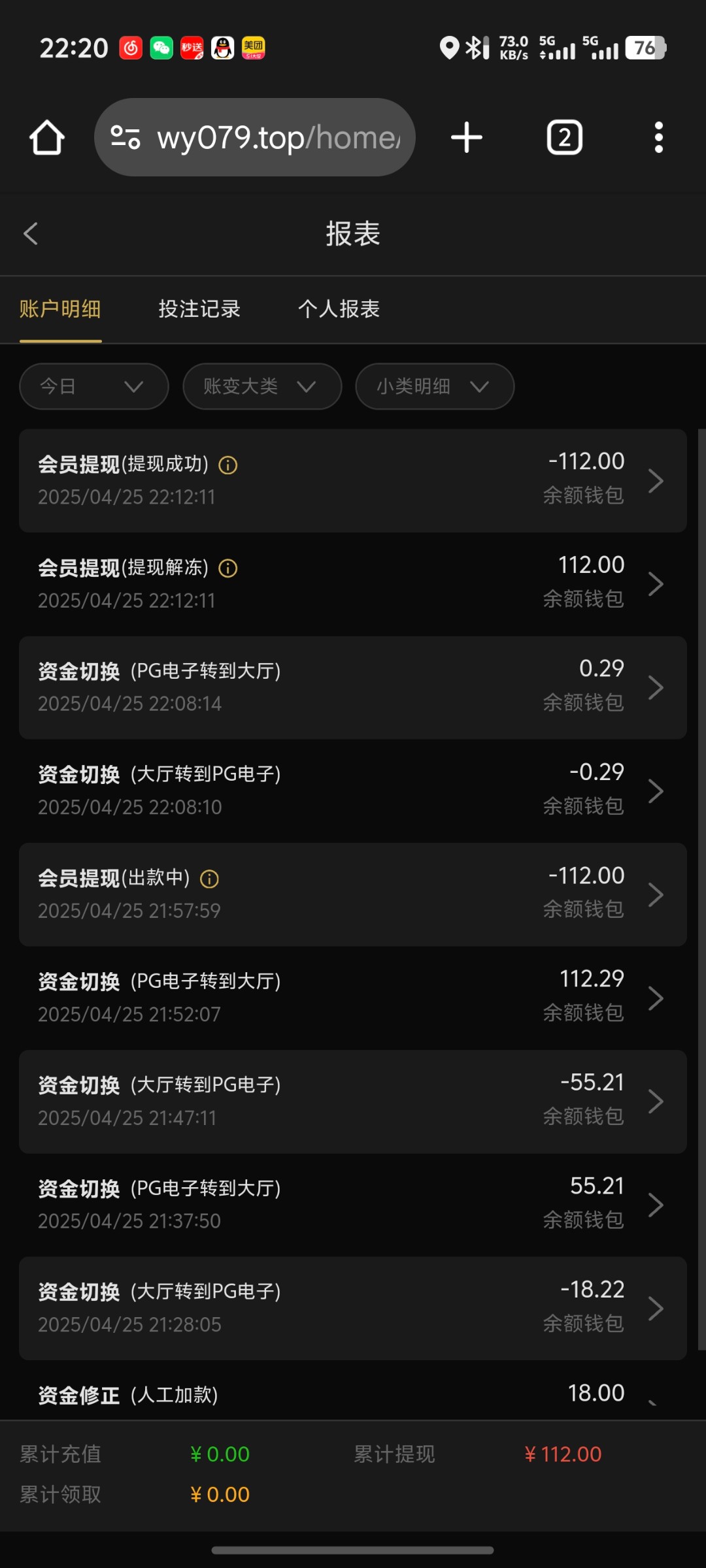 领了58没打出来,万赢21年就玩了,感觉这个台子和我相克,不管是充值还是送的彩金都是很少能打出来