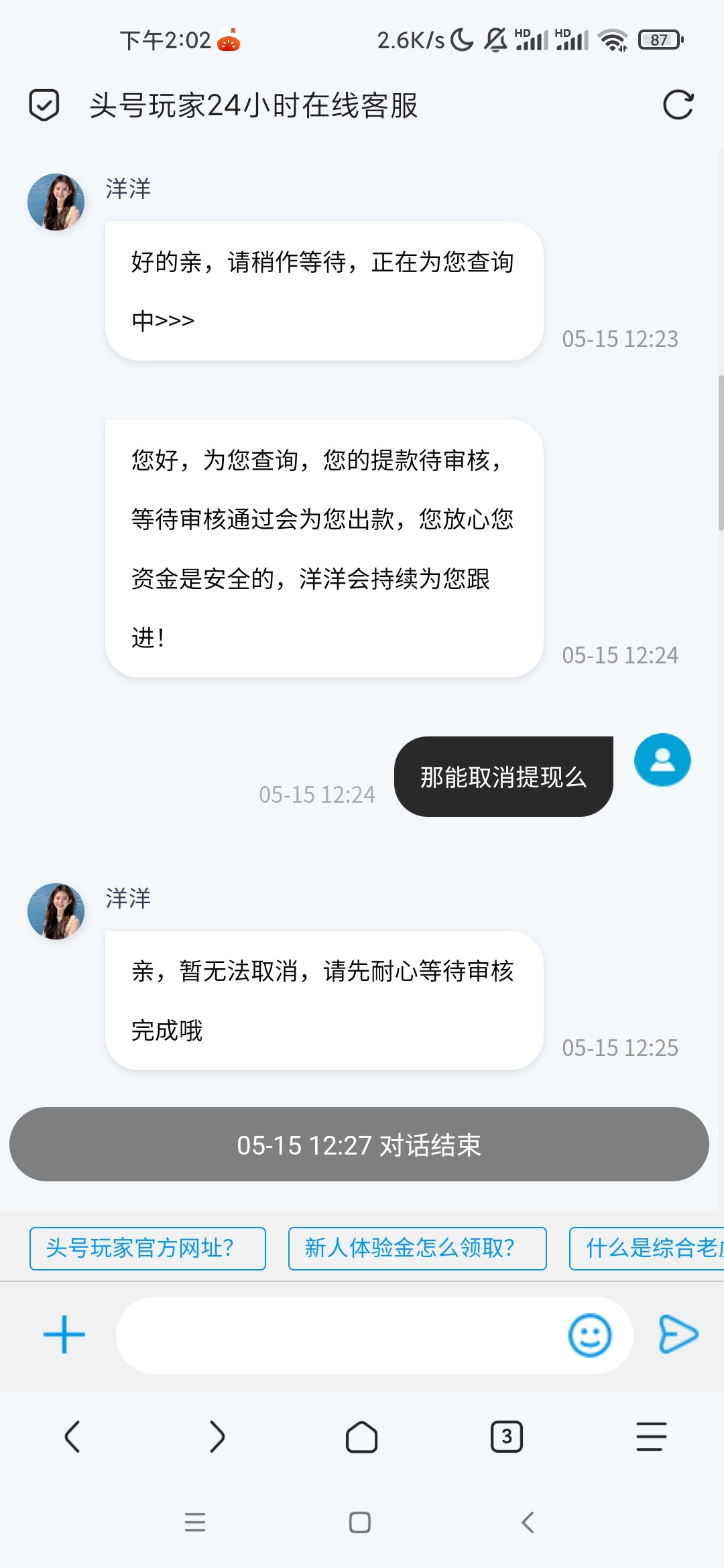 Lucky-coke ▶ yzq888 那就没得事,等吧,头号游戏方偶尔会审核的,我玩了他7年这个平台,审核了6次还是8次,基本都是第二天到的, 5月前