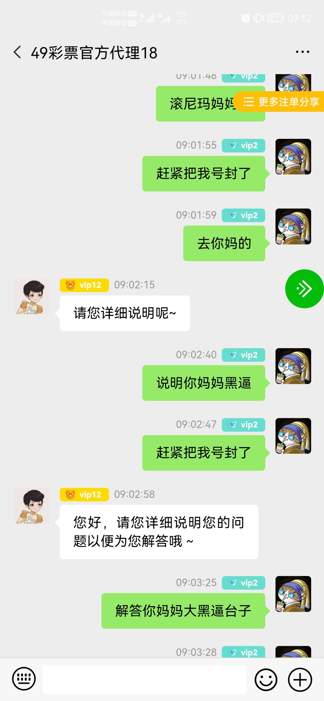傻逼玩意 妈的那个傻逼拿我的号码注册然后领取了电话彩金 你们白票真的恶心一群废物