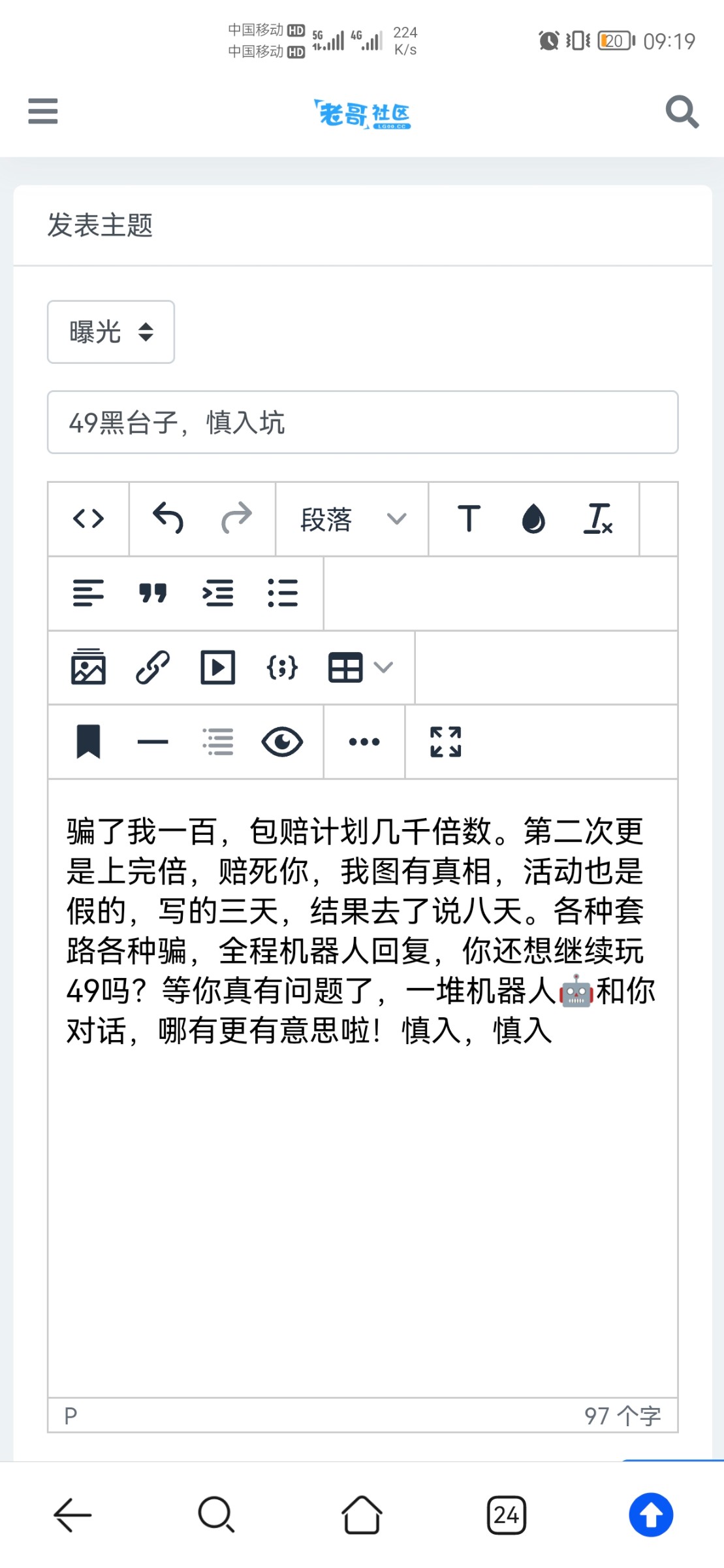 骗了我一百,包赔计划几千倍数。第二次更是上完倍,赔死你,我图有真相,活动也是假的,写的三天,结果去了说八天。各种套路各种骗,全程机器人回复,你还想继续玩49吗?等你真有问题了,一堆机器人