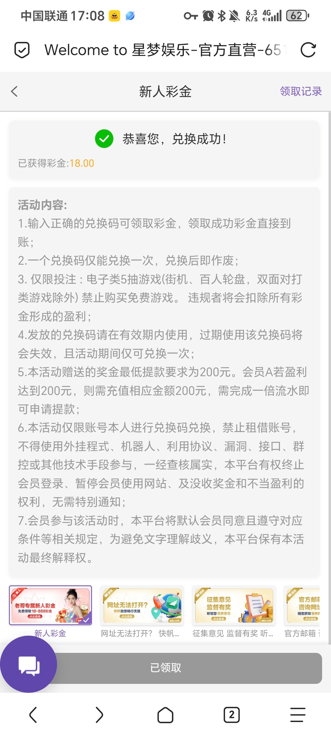 【星梦娱乐】⚜️注册送18⚜️300+150