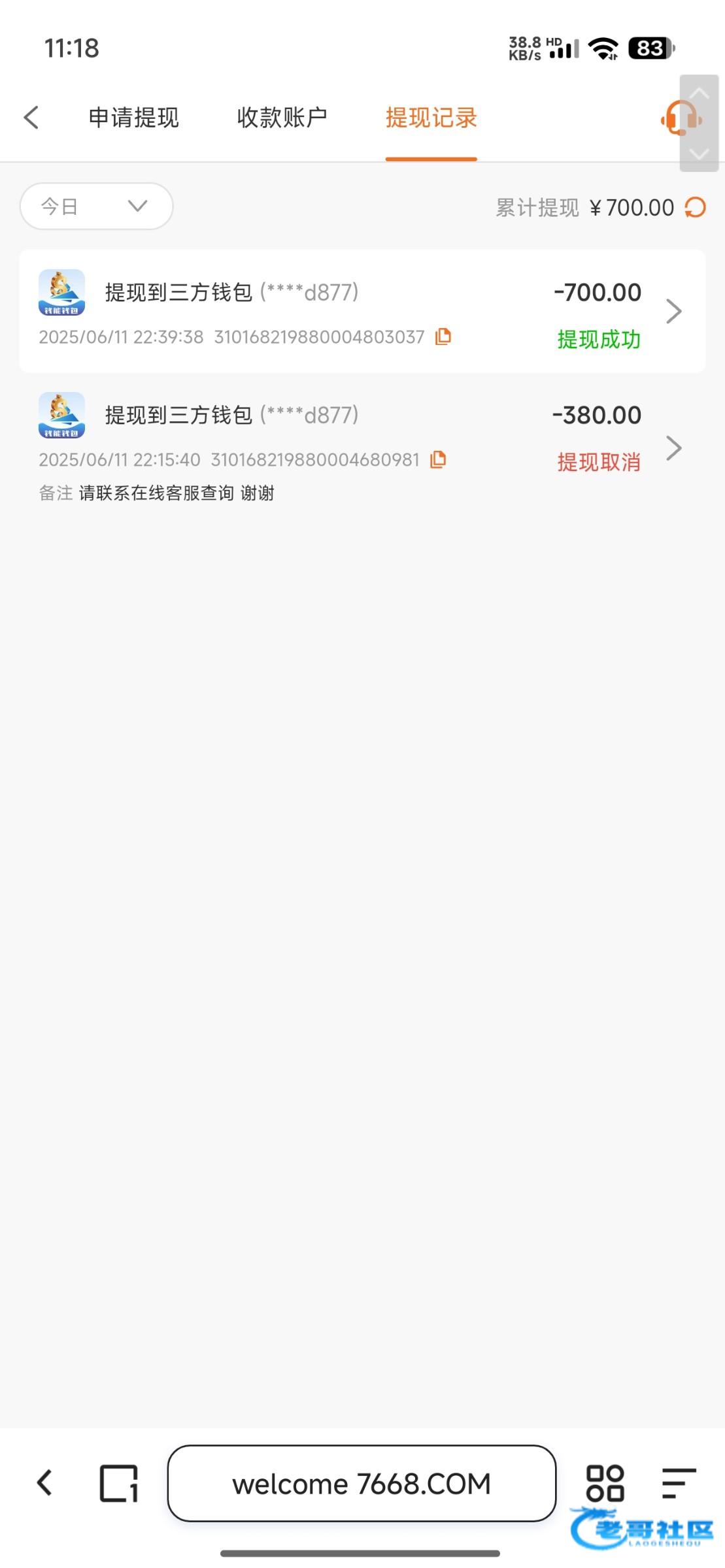 领了领了特邀38和app的28,打到380客服说要打到28+38总数要求,也就是660,麻1直接4块拉了五次进胡,搞到700提现秒到