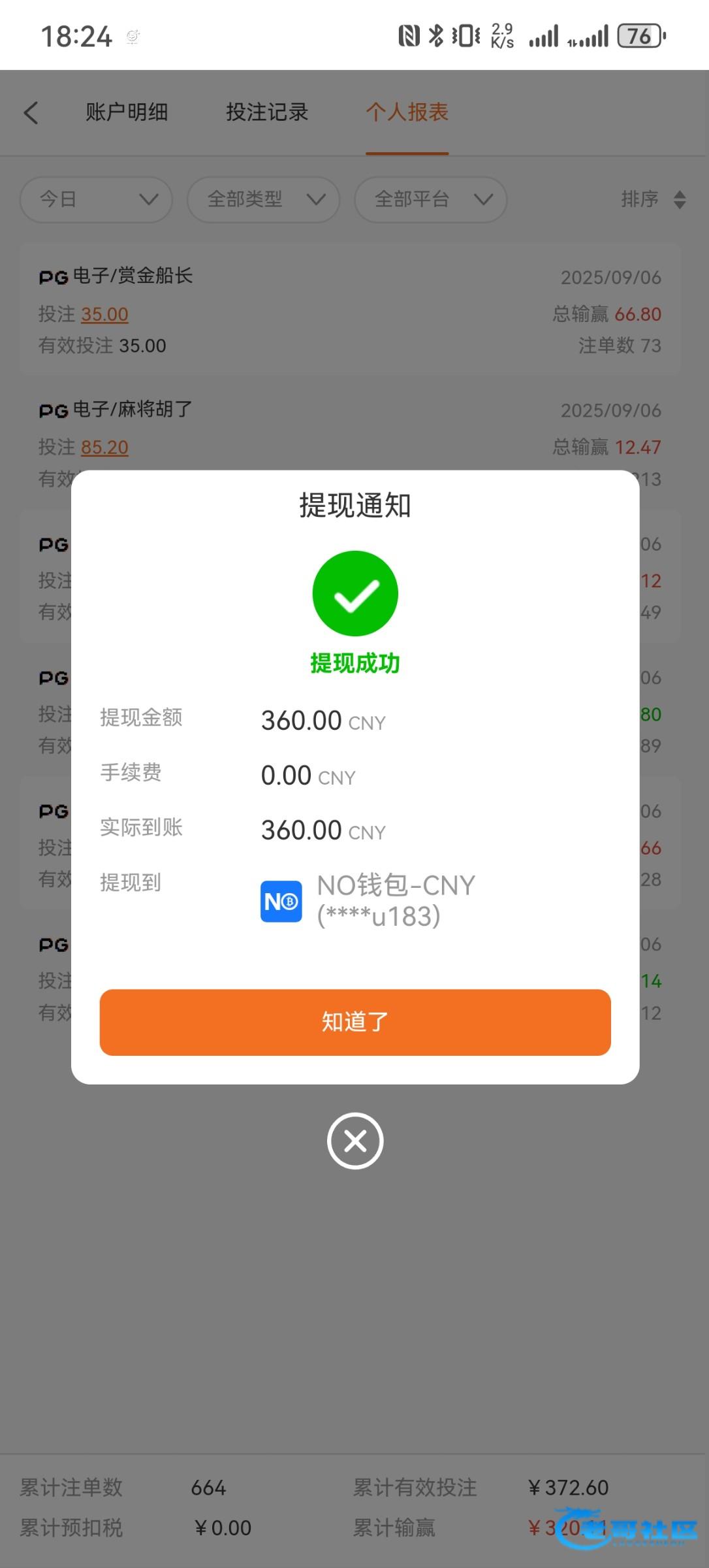 ,肯定到了的我今天一百赢三千多都给了