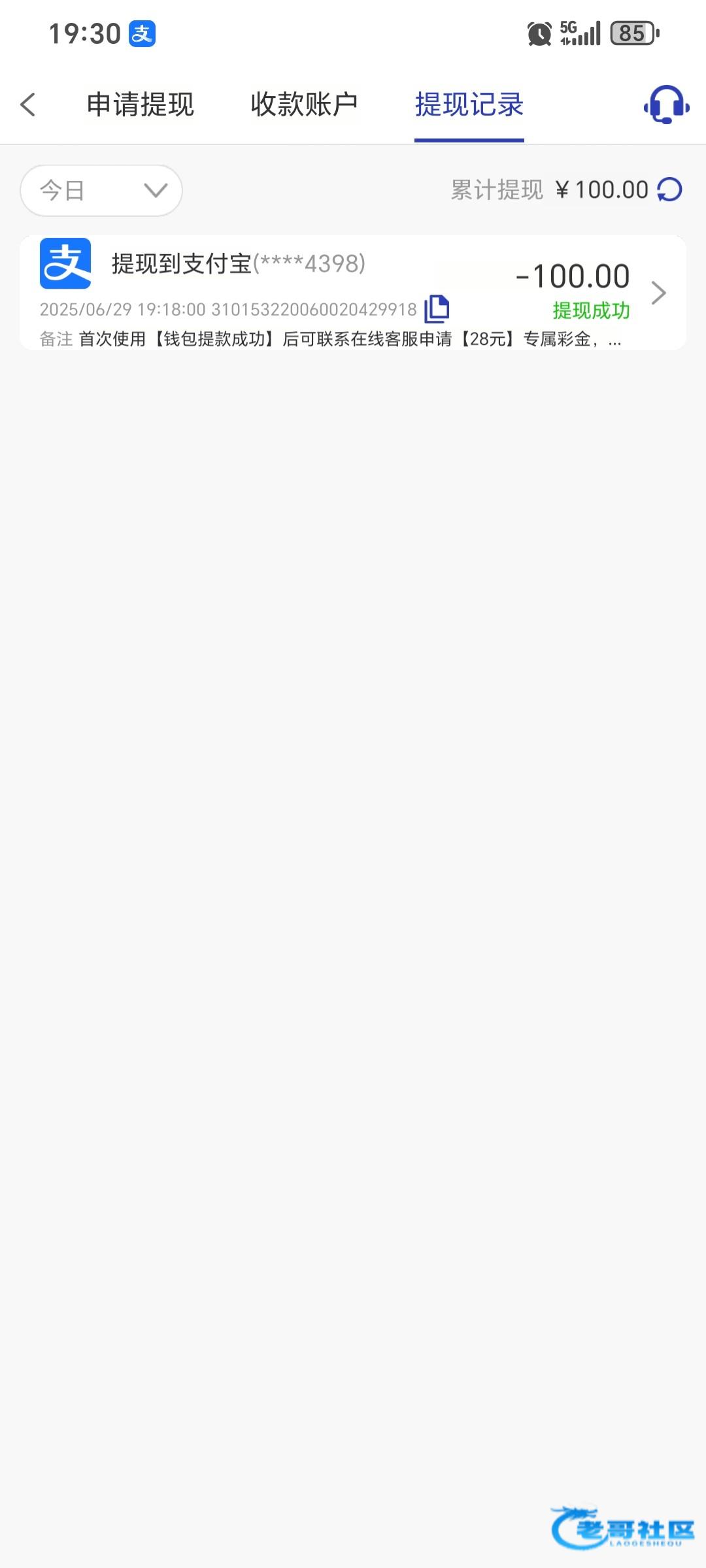 已提现到账100
