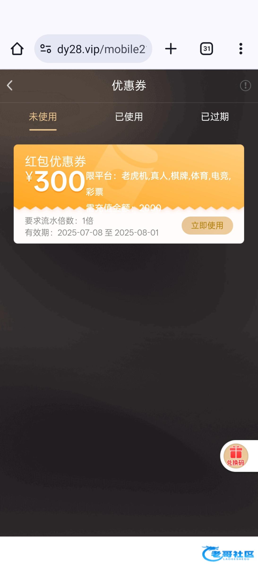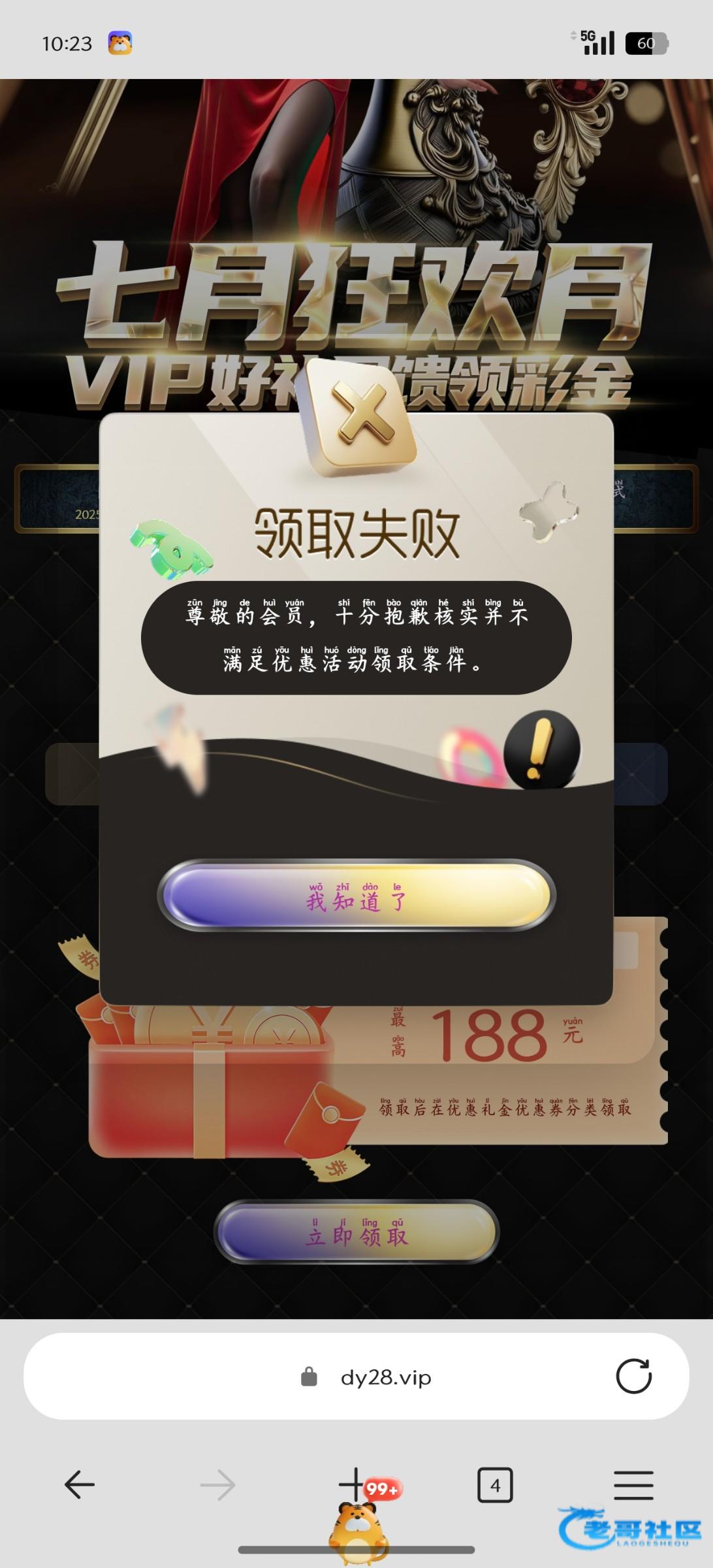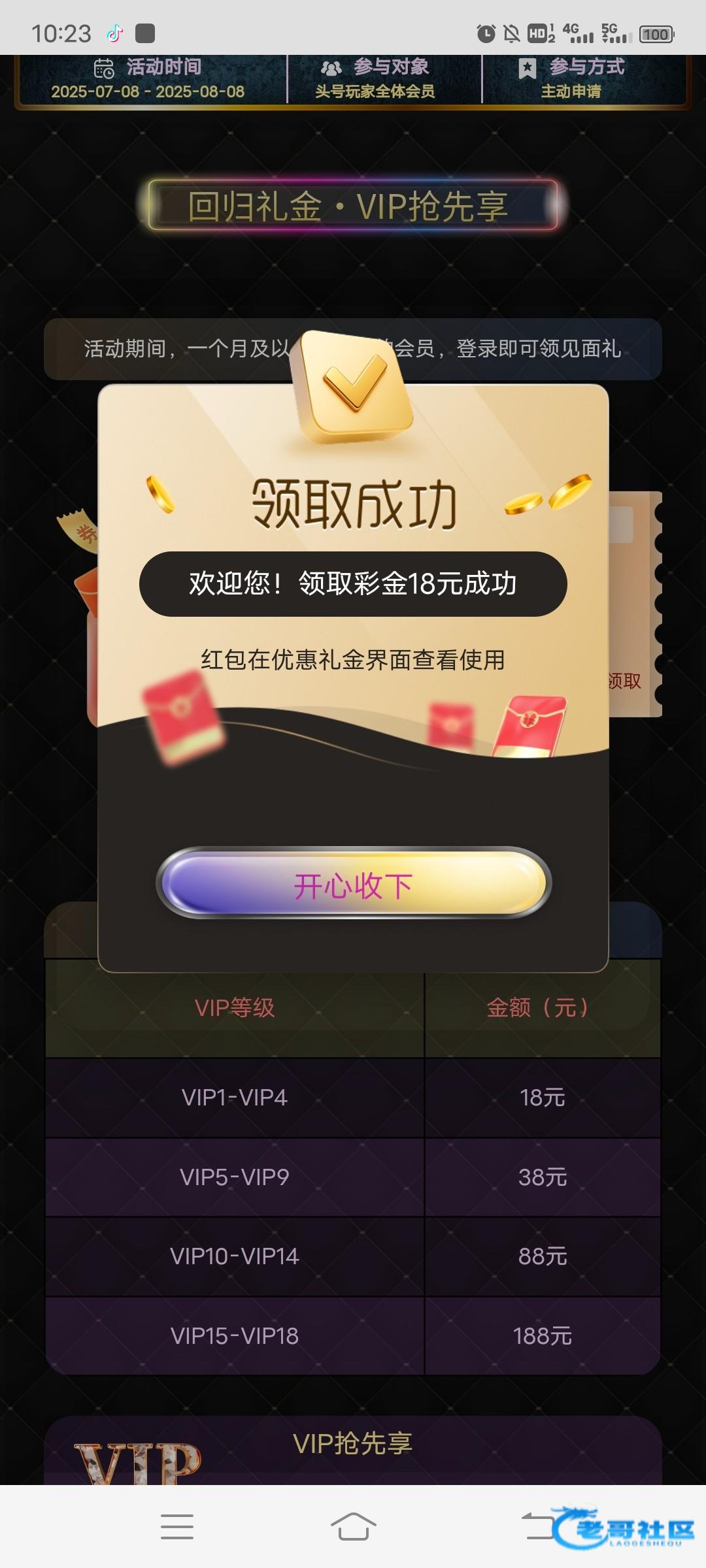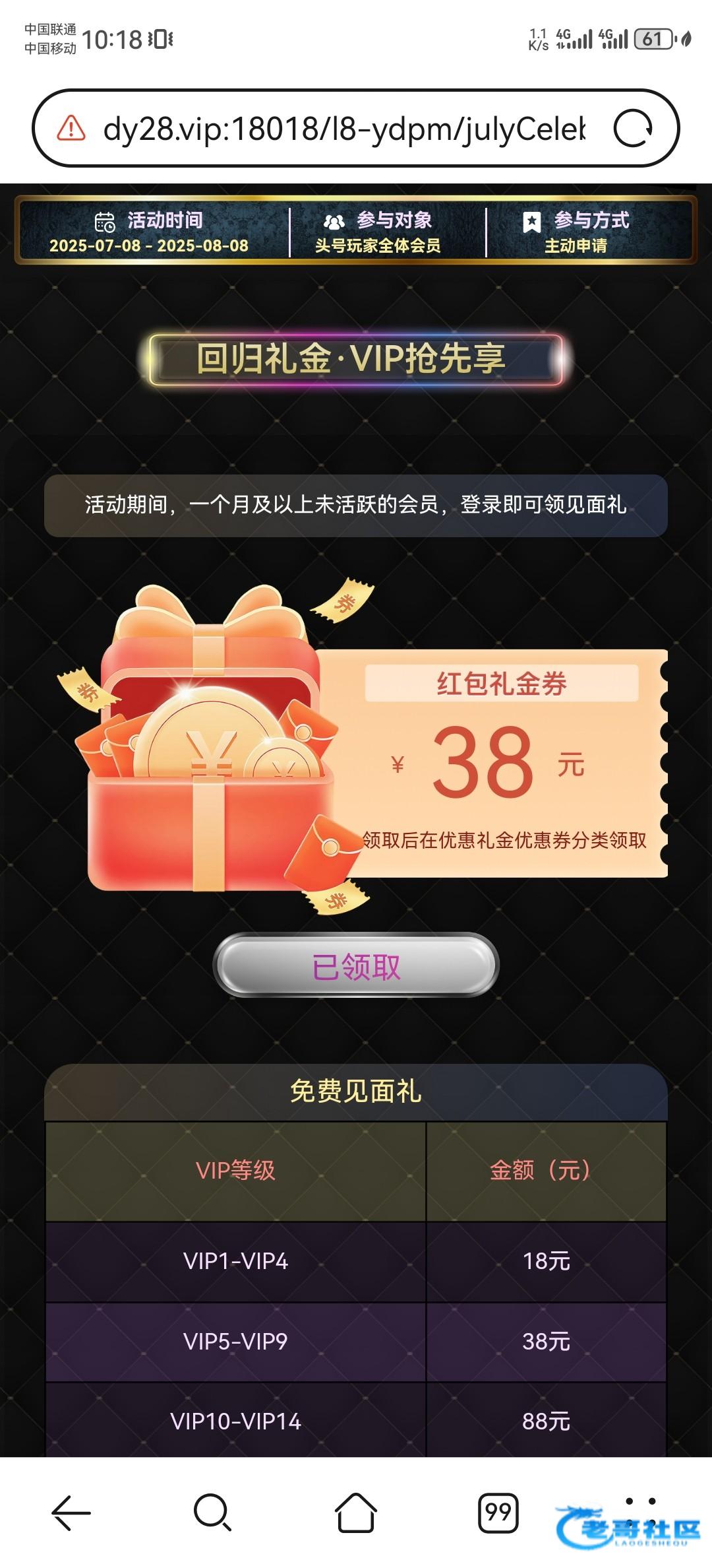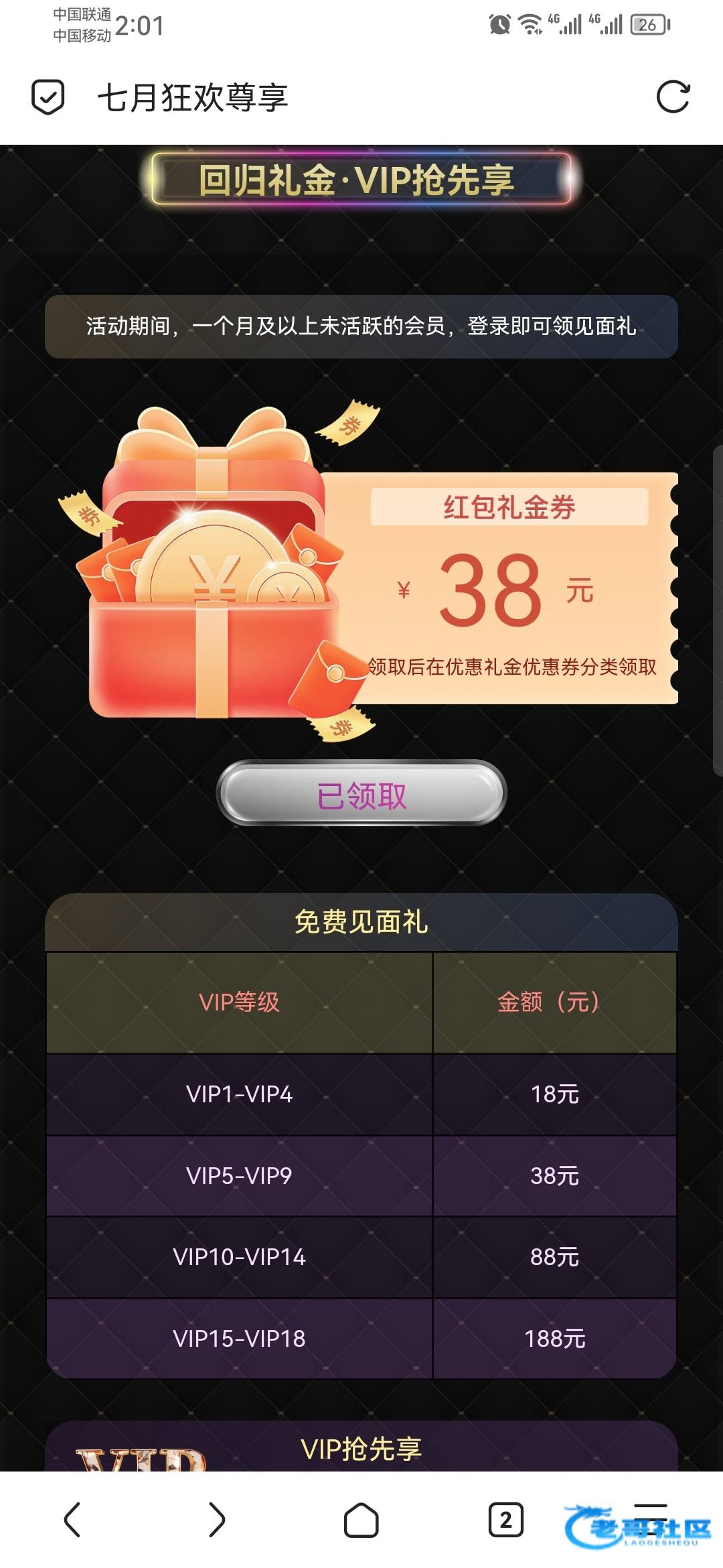 要一个月及以上未活跃的会员登录才有,vip1以上,有符合的去看看,领了38,打死了链接dy28.vip