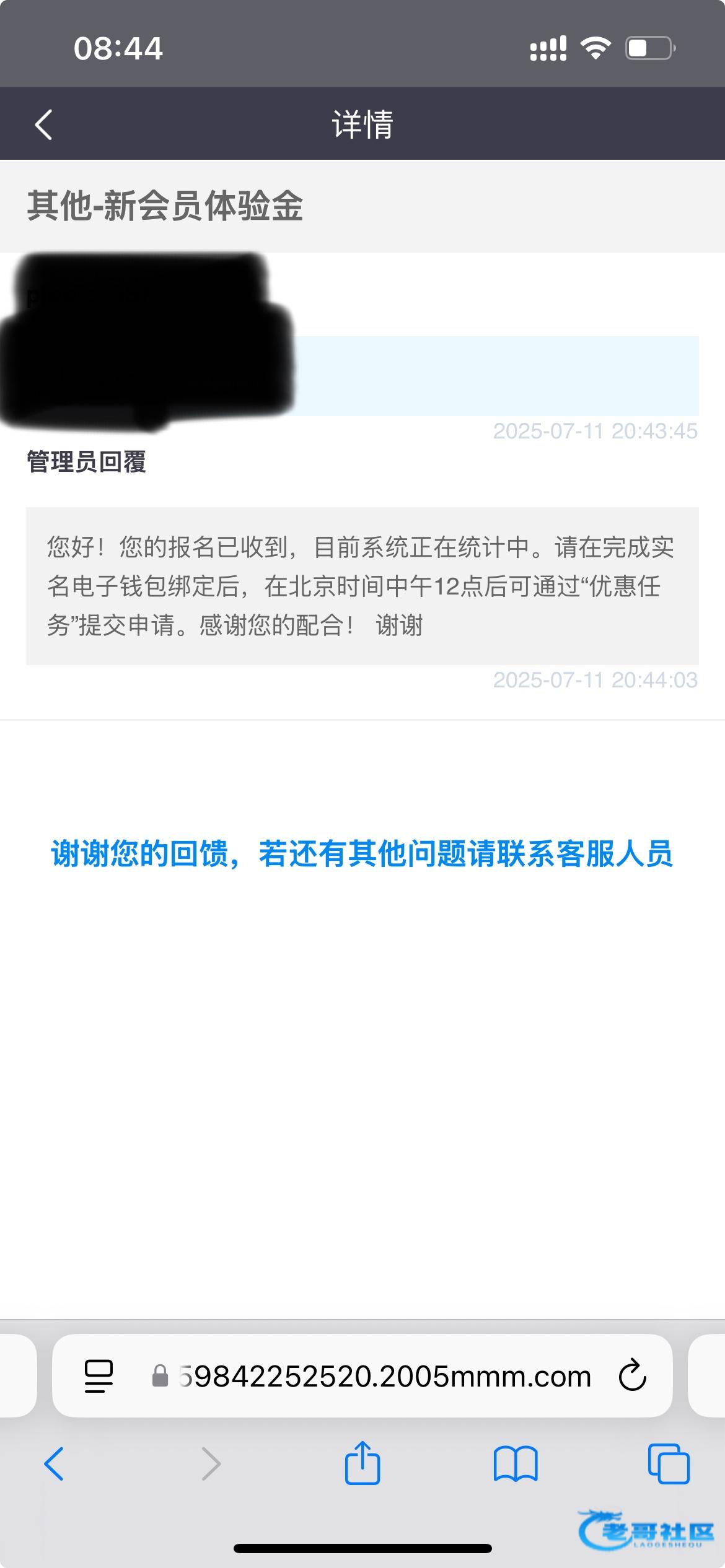 您好!您的报名已收到,目前系统正在统计中。请在完成实名电子钱包绑定后,在北京时间中午12点后可通过“优惠任务”提交申请。感谢您的配合! 谢谢