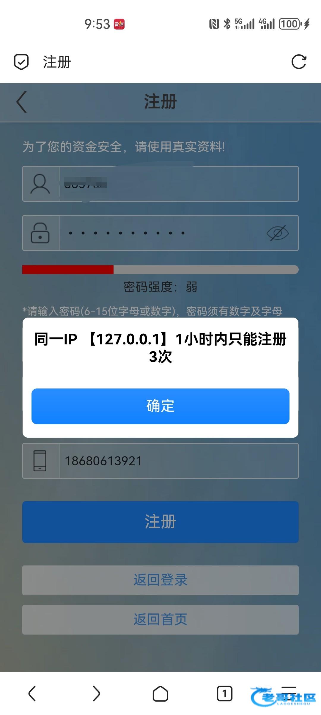 注册都注册不了 直接说同ip1小时只能注册3次 6666