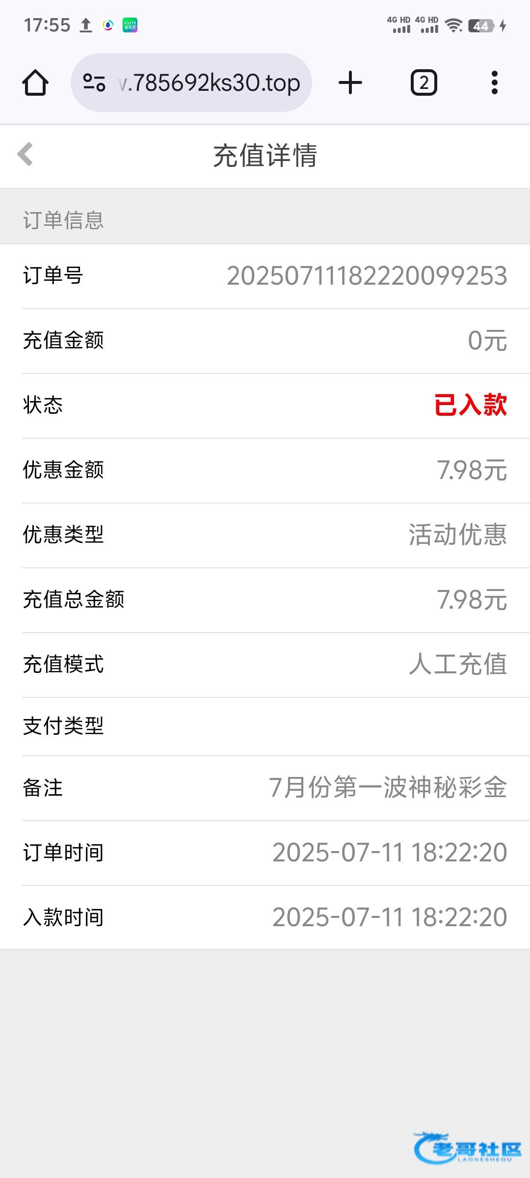 7月第一波神秘彩金到了,46466.vip,给了8块。