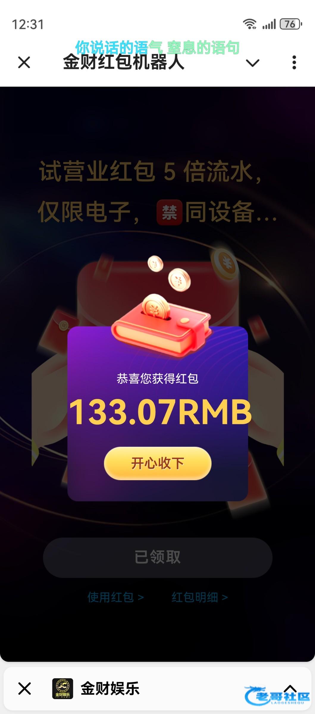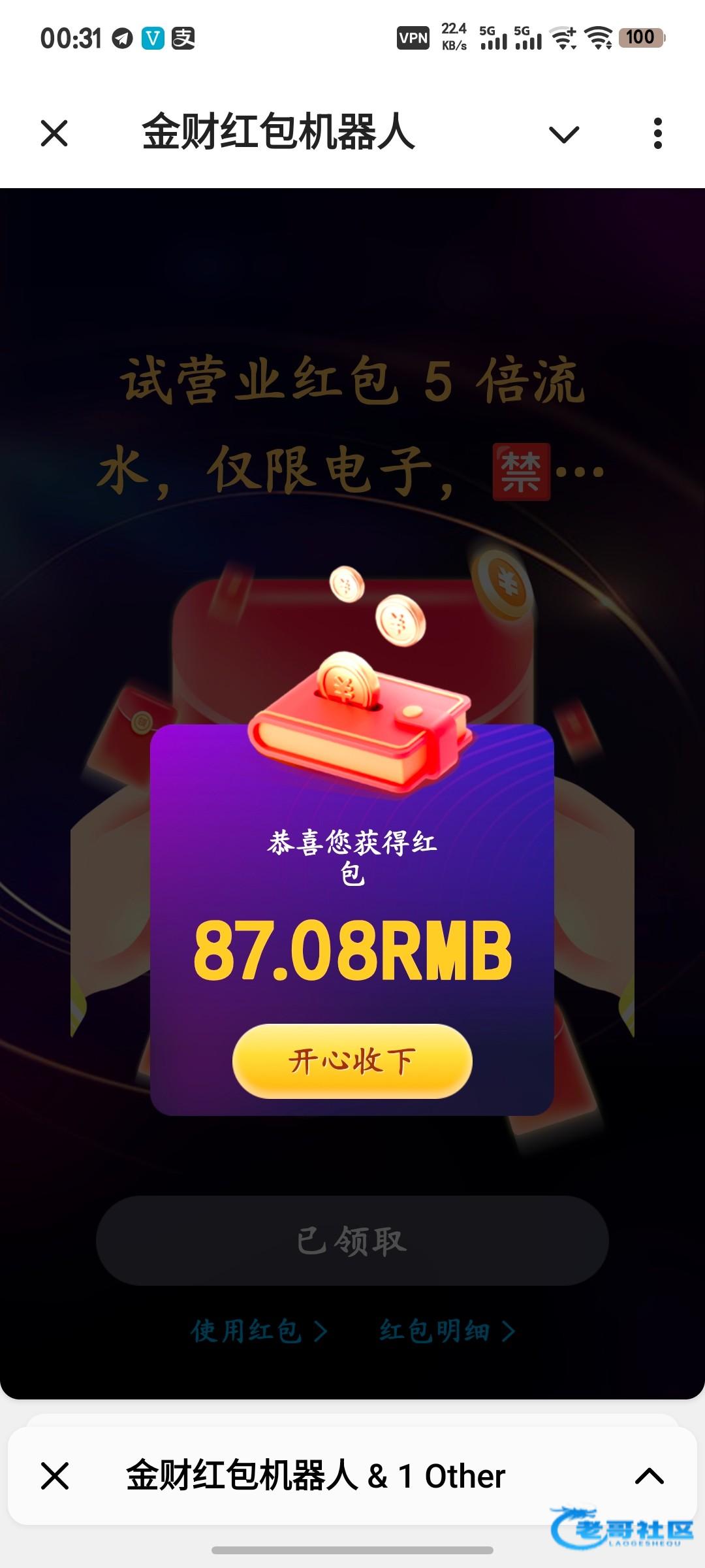 5个号抢530多,飞机台都太杀了,各种台我抢红包起码抢了大几百u了,0出款,曹踏马的。