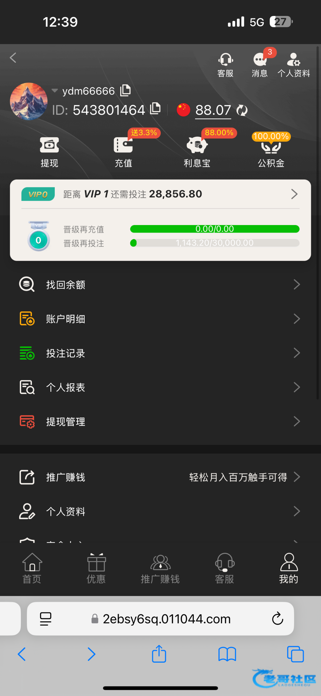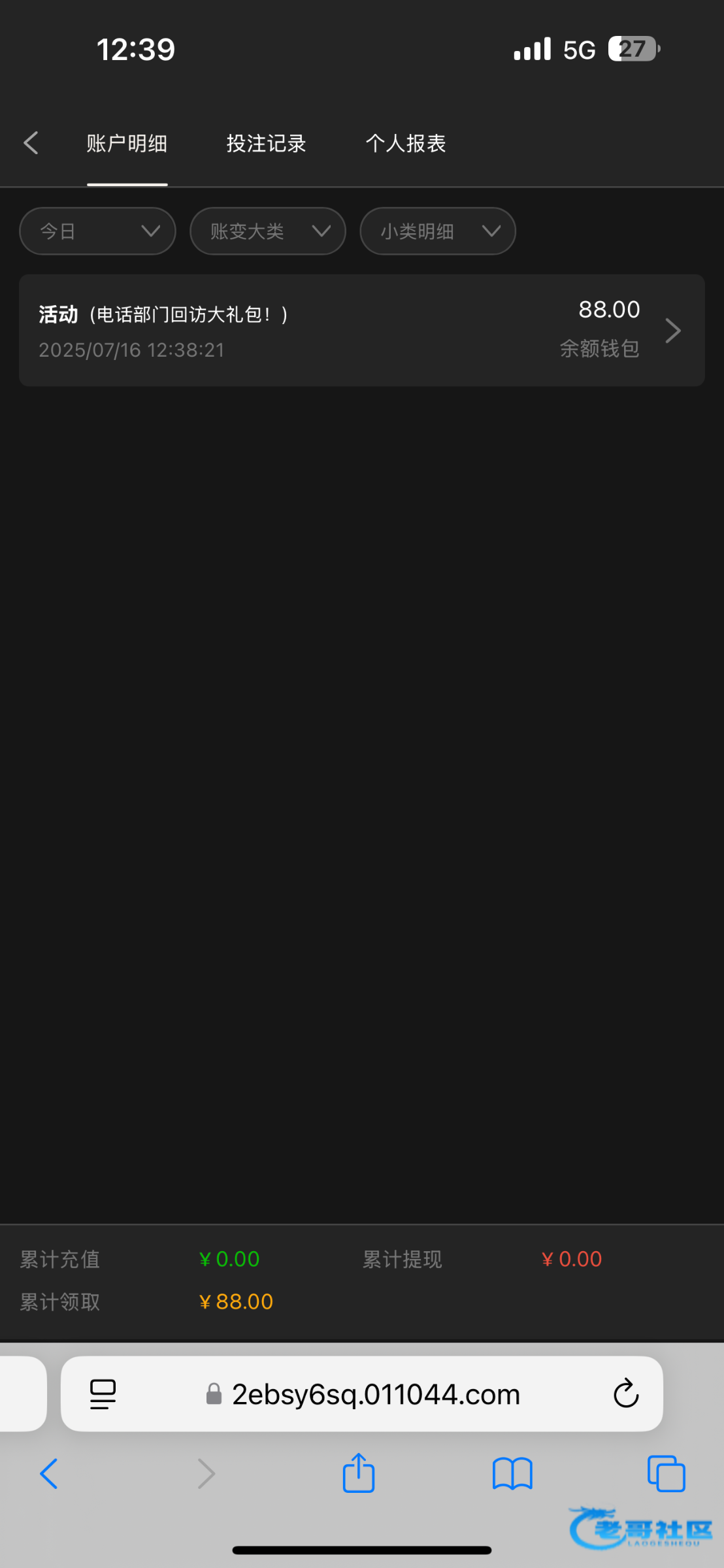 3016.com 打电话说领回访大礼包 然后我登陆就到帐88彩金 老哥们登陆看看吧