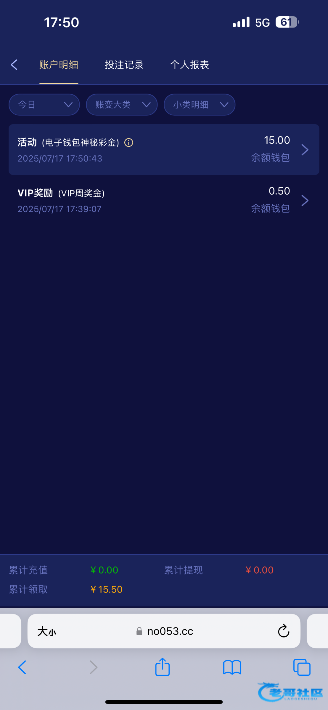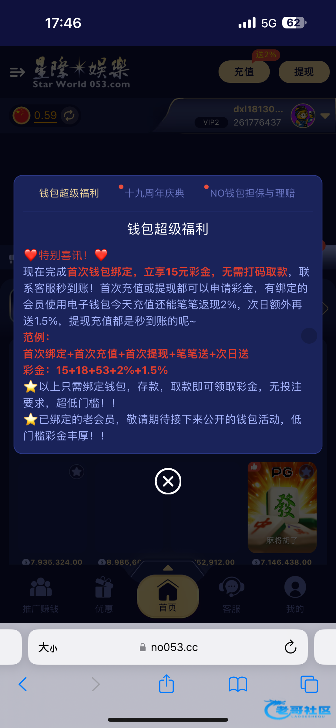搞了15彩金之后首次提现钱包还能领取53彩金