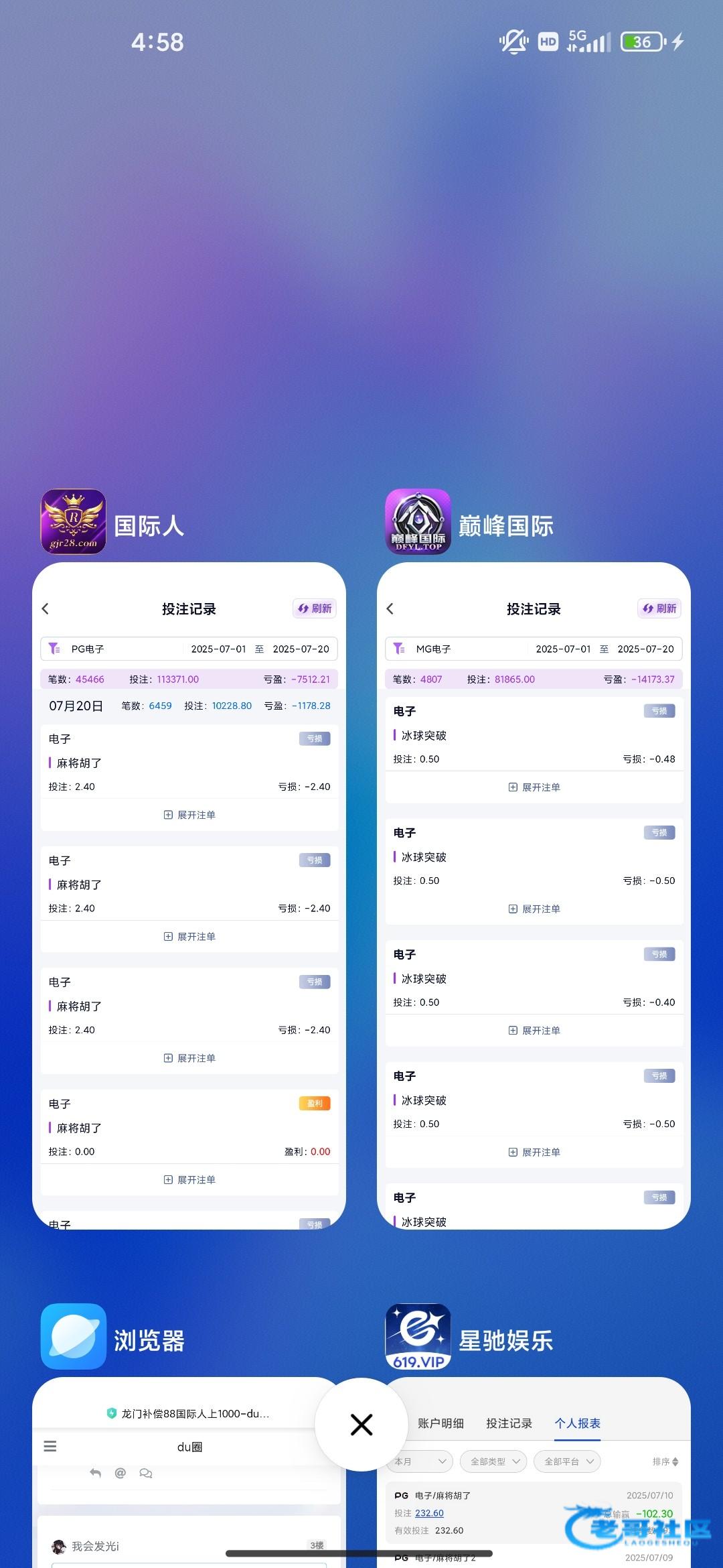 国际人这个月输7000多,巅峰输1.4w,星字开头的加起来输两万多,这个月老哥的台输了5万了,好累