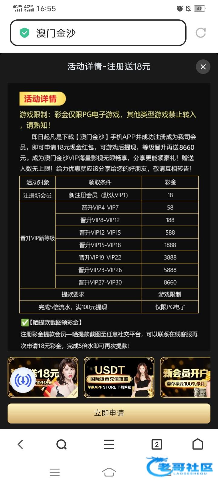手机号码注册,需要绑定银行卡,在上面活动那里申请注册彩金18,可以领取6元签到彩金,5倍流水,100提款,撸出来的团个猪脚饭,谢谢网站88032.cc
