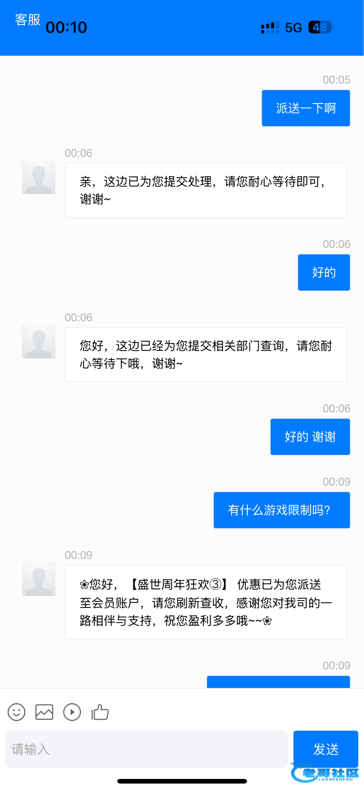 gw010405 ▶ bba64aa 送呢 我刚申请的等了十几分钟不要退出客服就送了 2月前
