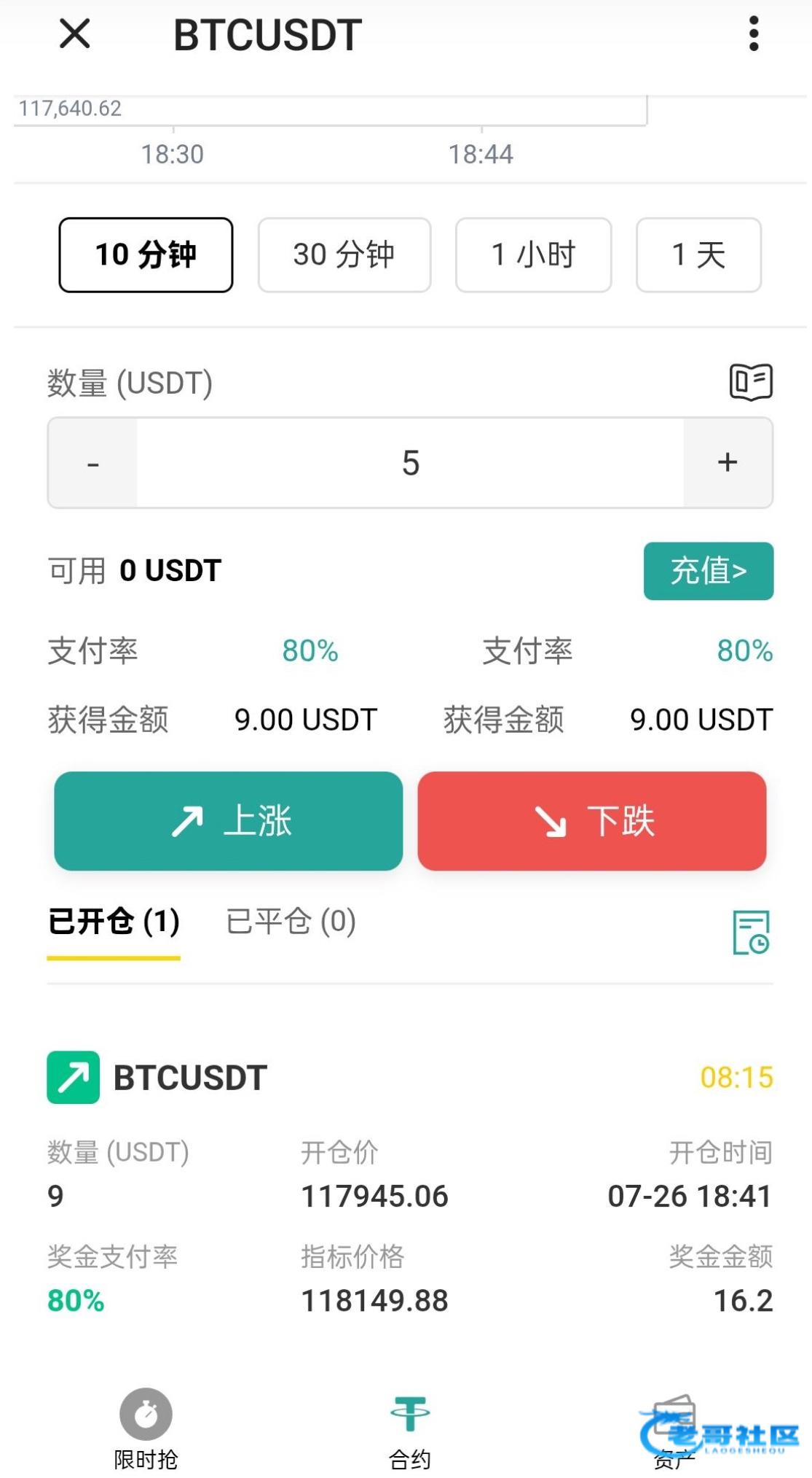 注册秒送5u,玩合约猜涨跌20u可提,