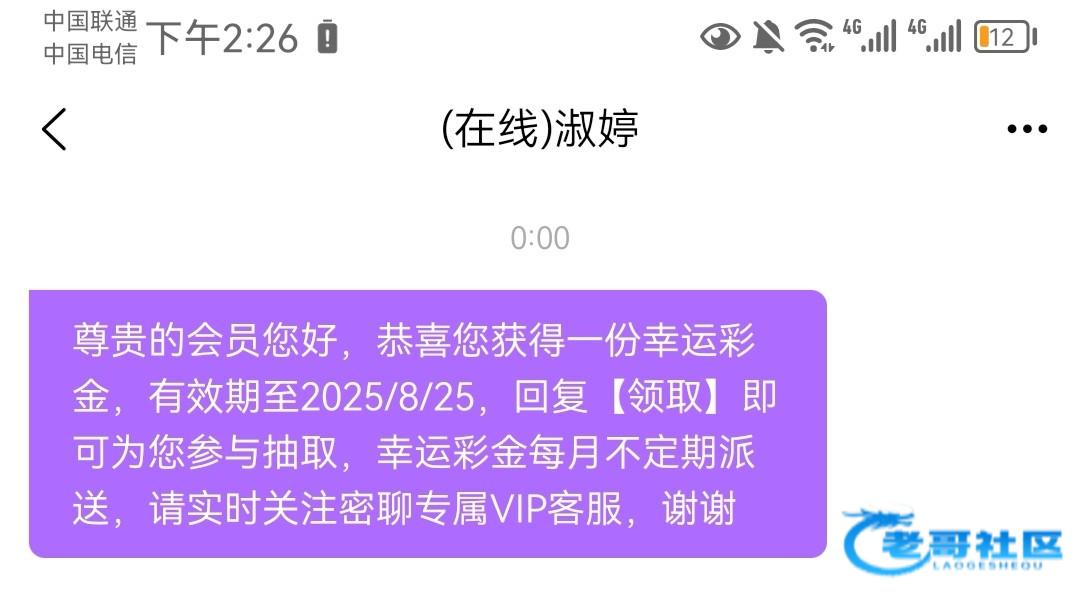 发帖的目的是为了提醒一下有下载过密聊的老哥们的,我之前就是没注意错过了几笔密聊彩金,至于台子我也说了很多台子都有密聊客服的,有些没脑子的老哥就开始骂人了,这种人就该他输钱
