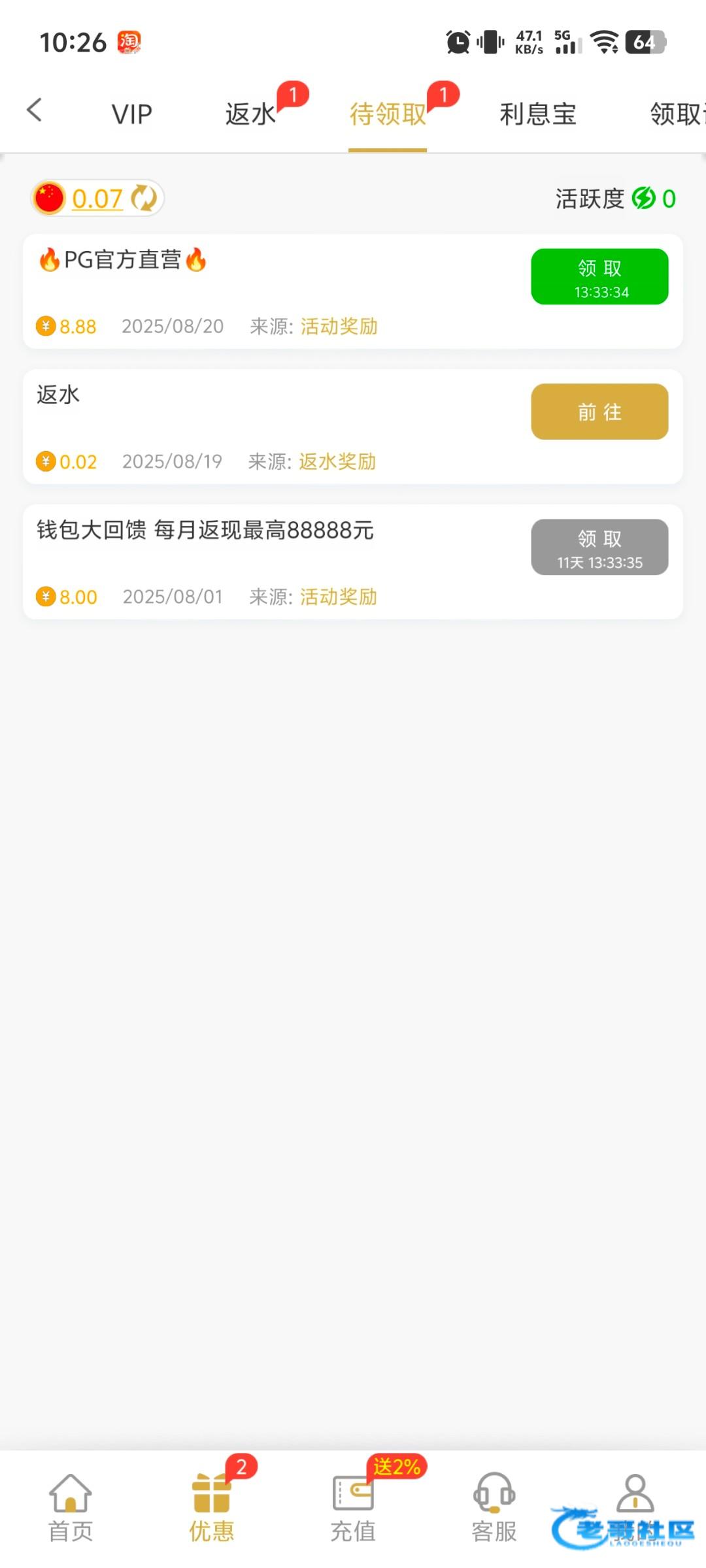没充值有个毛啊,还人人都有,搁这发帖刷经验呢