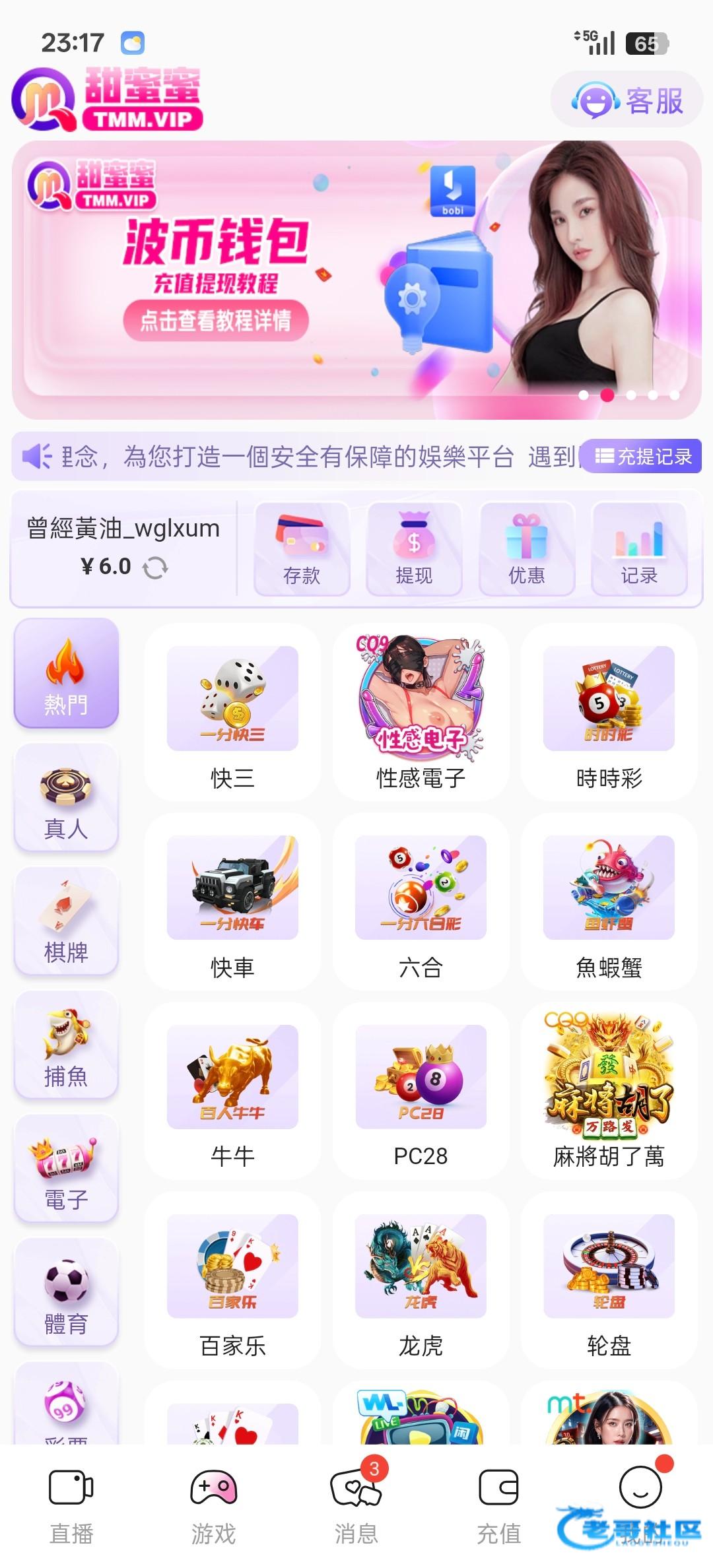 收到短信,找客服申请了6彩金! tmm.vip
