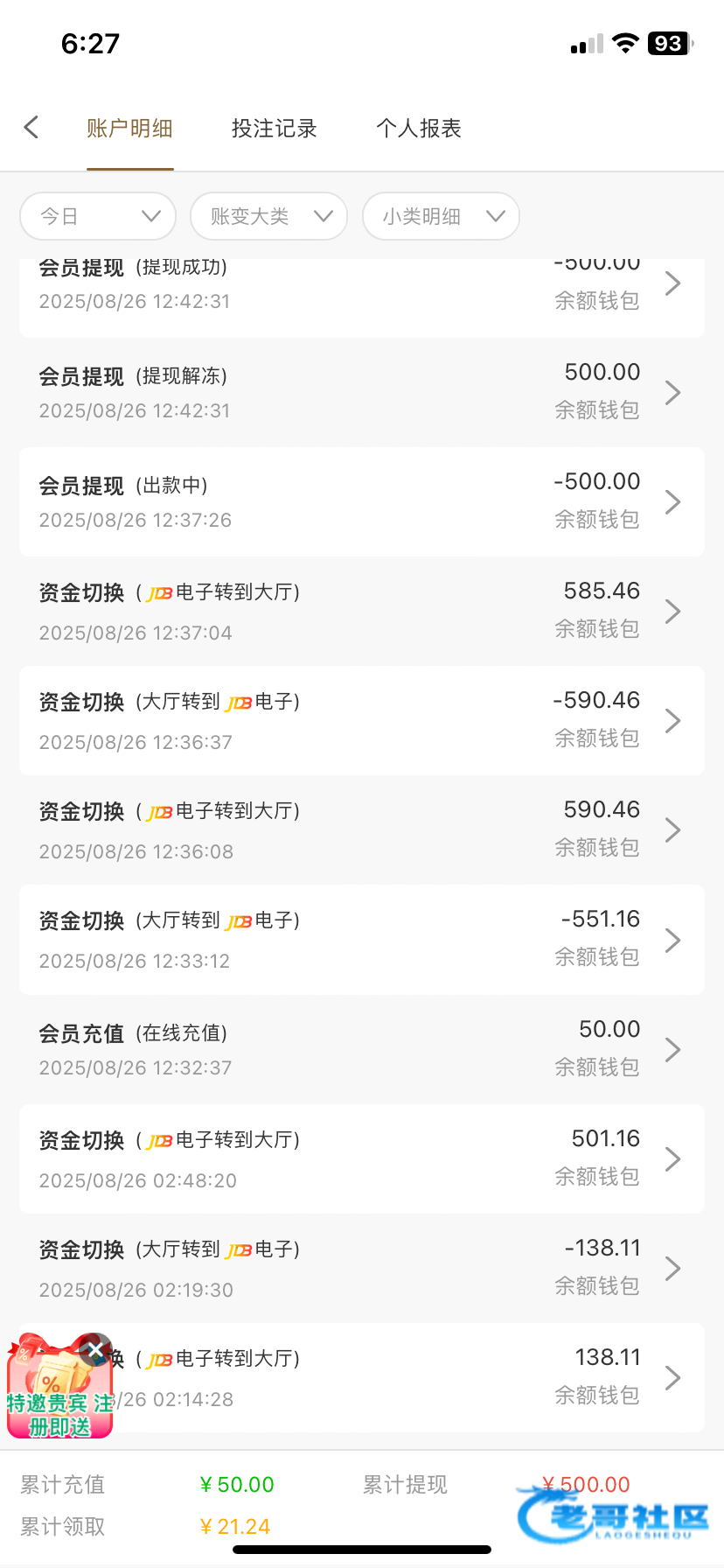 今天早上充50,提了100提是可以提的,多了不知道给不给