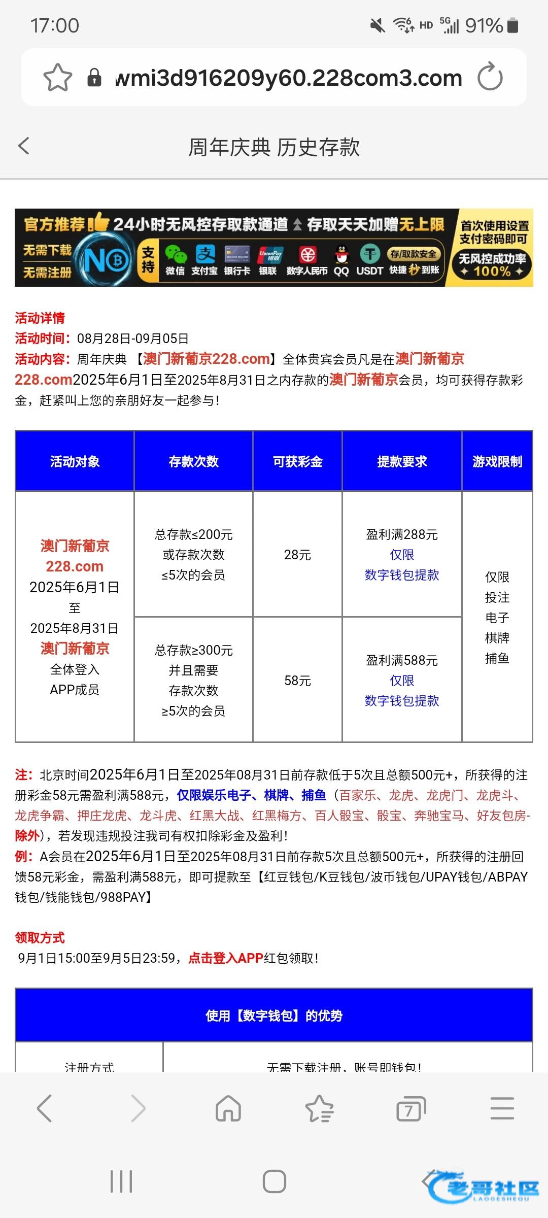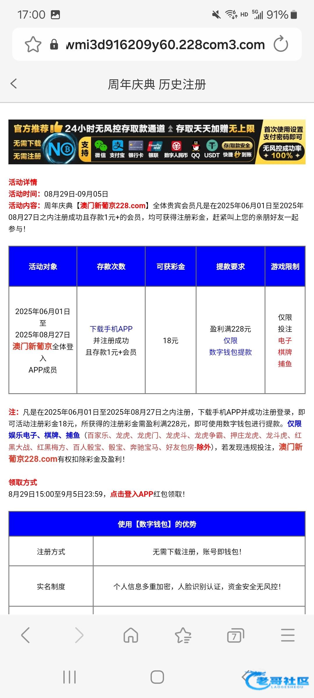 受众面不太广,新用户可以去尝试领一下18。老用户只有时间段存款活动。链接 228.com
