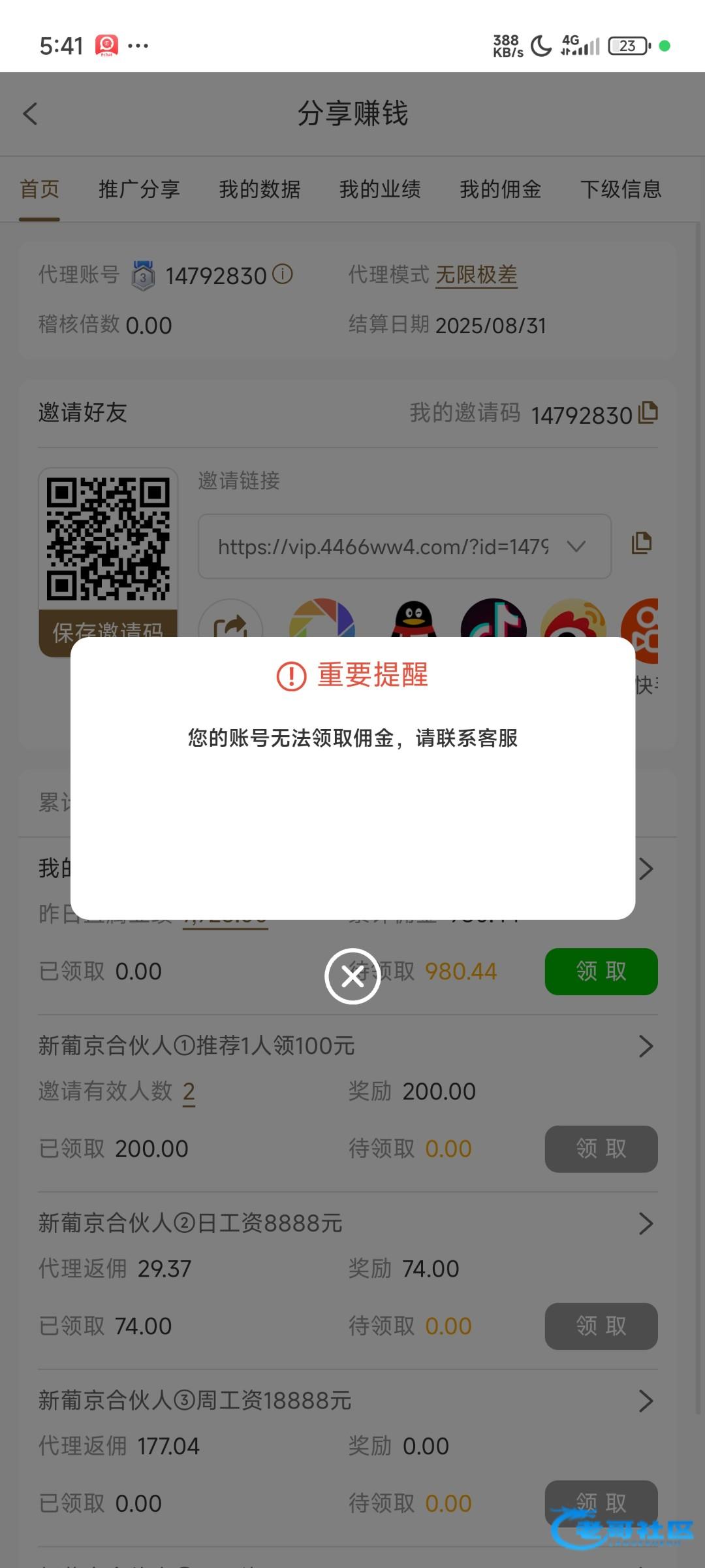 领取代理佣金各种借口不让你领【说白了代理钱都黑】充值就别玩了避雷!!避雷!!避雷!!避雷!!4466澳门新葡京避雷!!