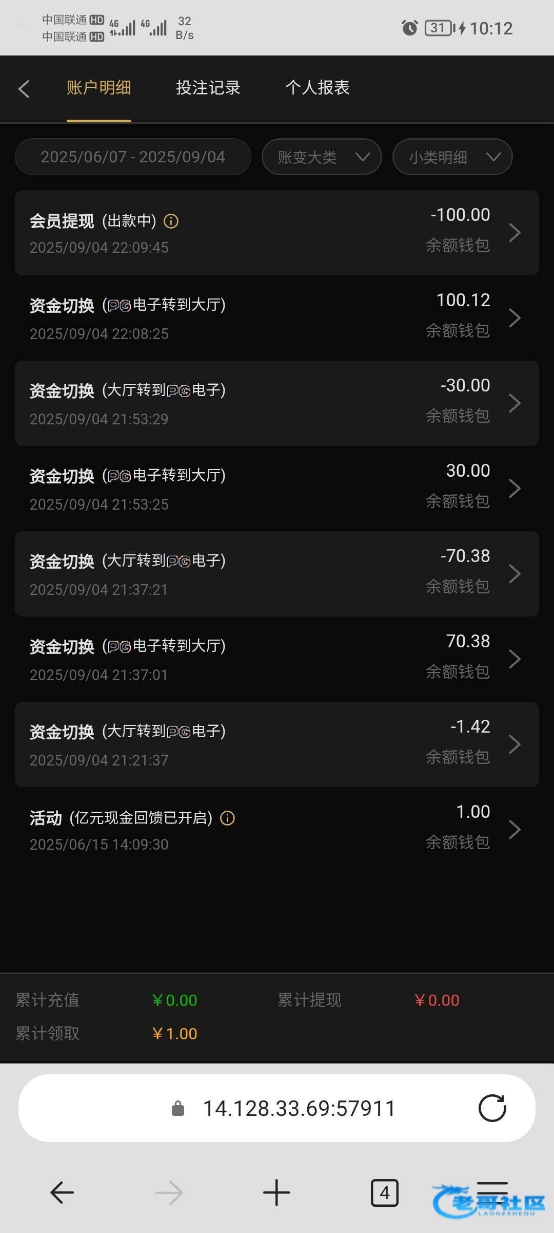 100+100进4次胡 没超过30倍 真牛皮 真垃圾台