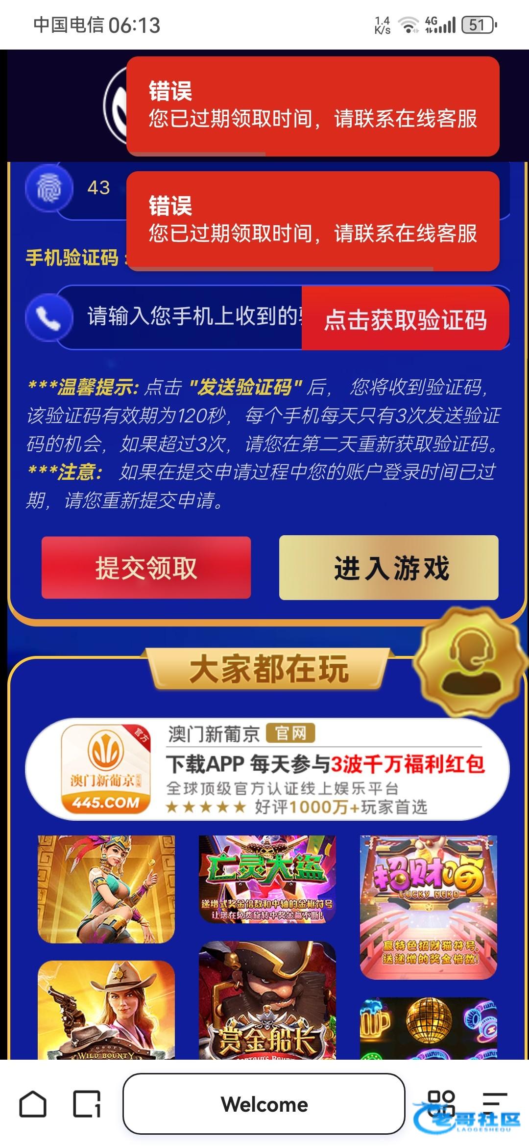澳门新葡京短信自助验证44元,http://79700.my 刚领到的没有打出来