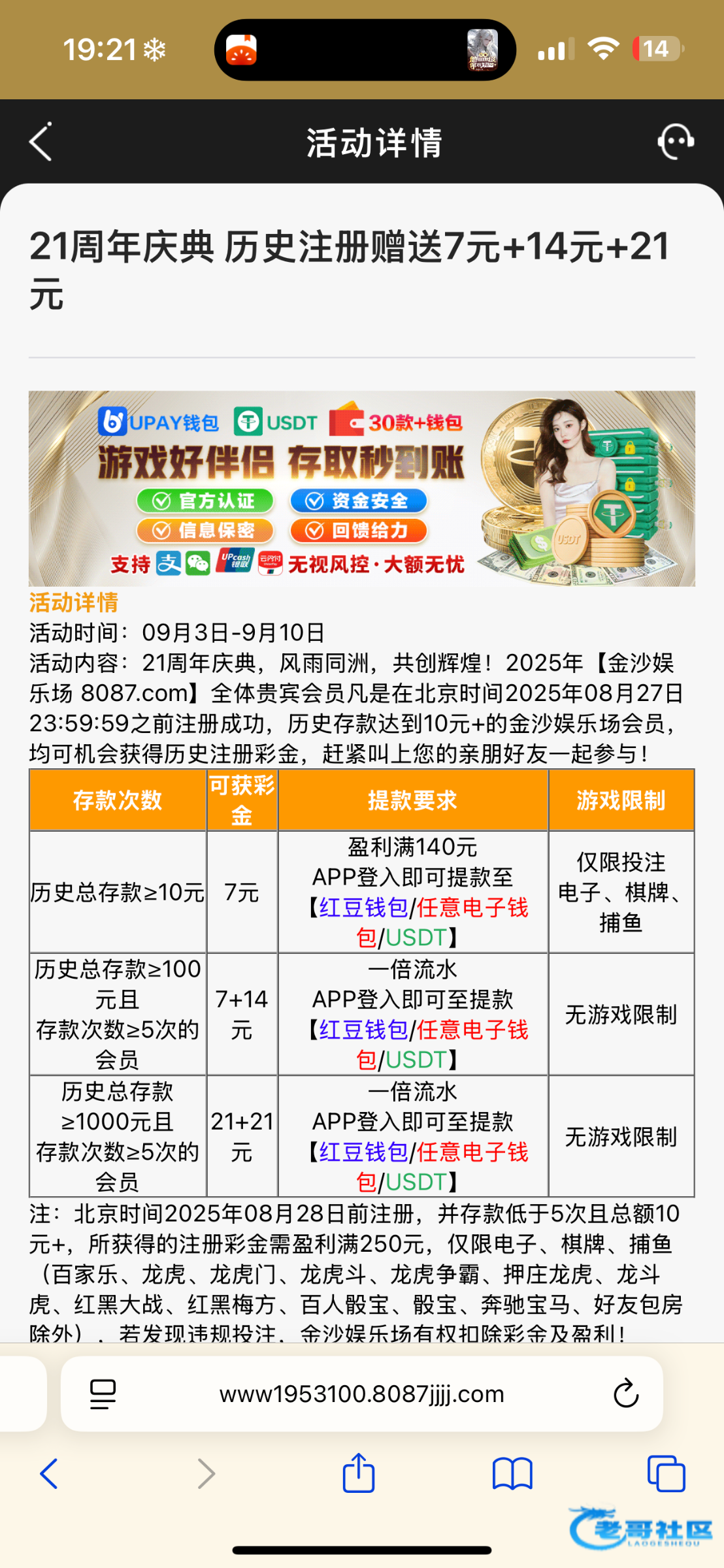 这是个老台子了 老哥们大部分应该都玩过 最低应该夜充值果100 明天就可以领取历史注册彩金了