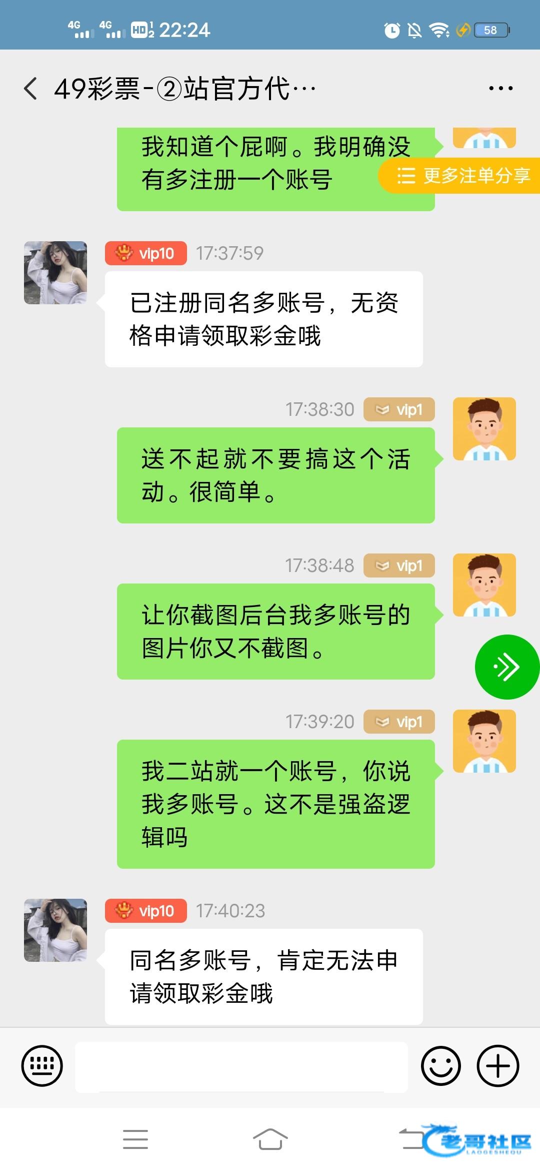 真是煞笔台,这个代理也是个傻屌。黑比。我第一次注册二站,他说我多账号,我让他截图都不敢,一直机器人一样说我多账号。忽悠我充值,然后充值好了就说多账号,这就是畜生行为