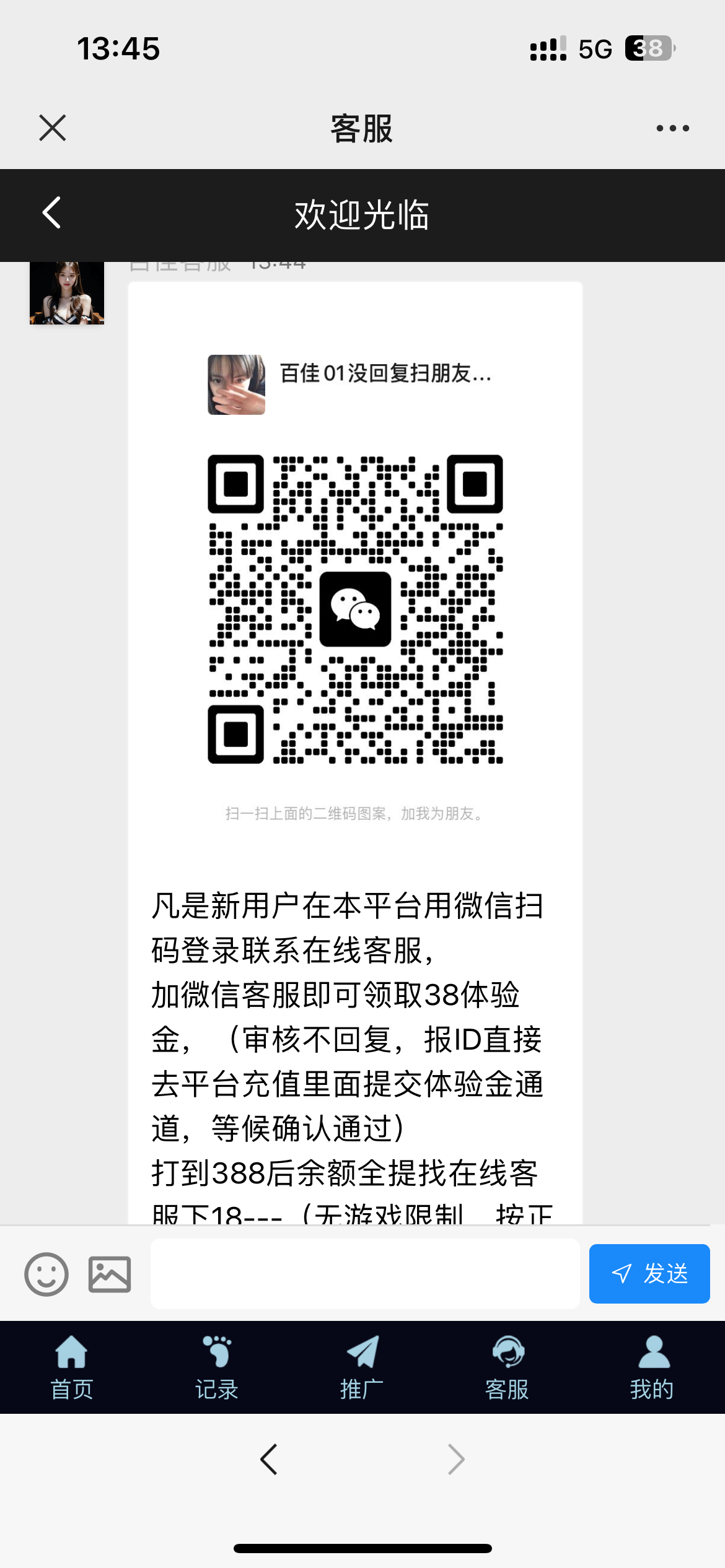 送38打到388提18 加客服微信发ID然后再去提交充值就行