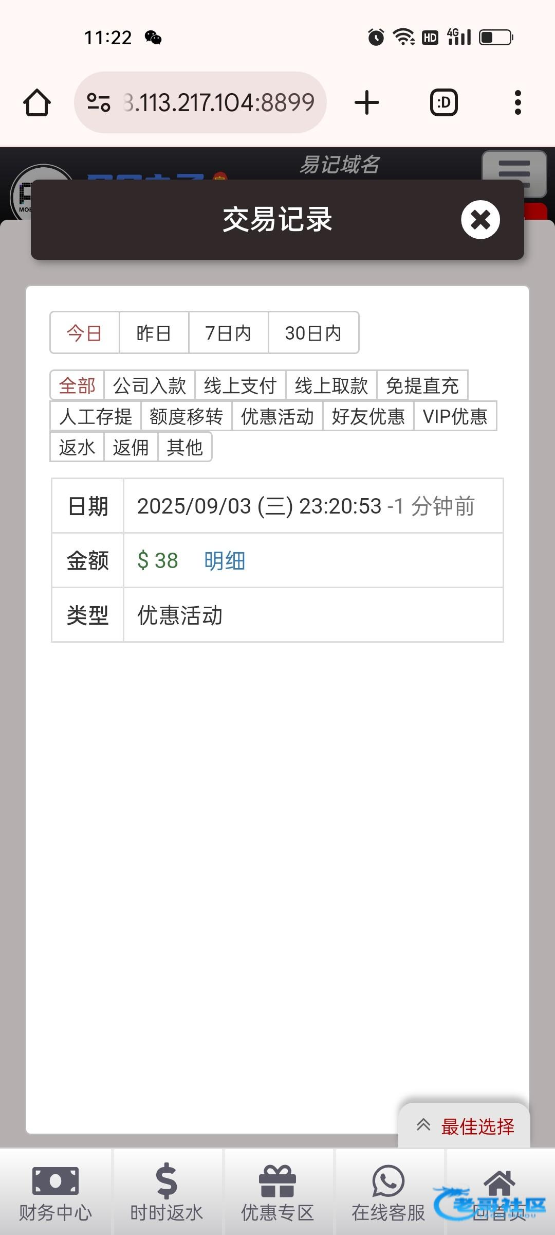 有漏接电话的可以去看一下,领了38彩金没打出来。地址049.net