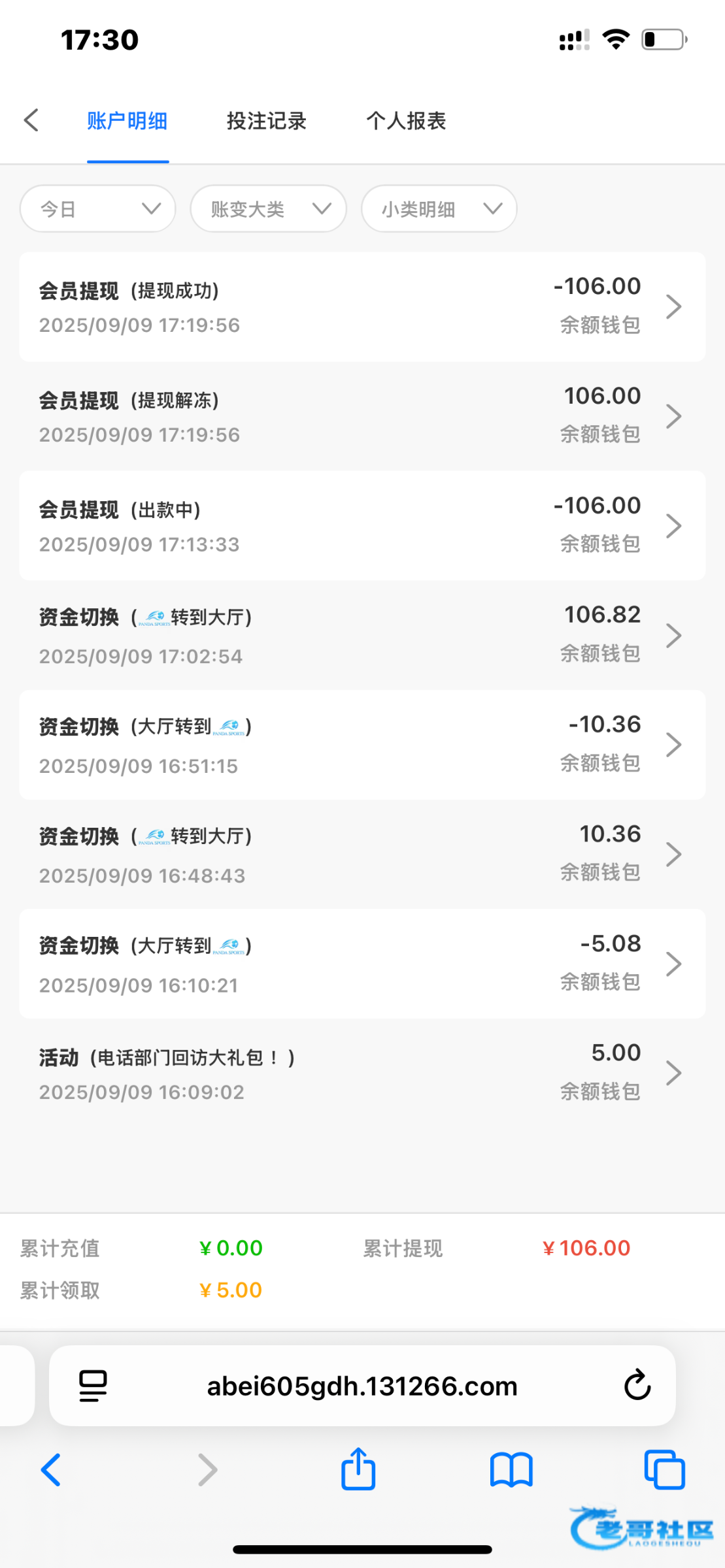 井盖大王 ▶ a8220755 这个死妈台子狗都不玩,我也是刚开始玩输了两千多就不玩了,前些天给我打电话说给我申请了一笔回访88彩金要我上号领取,当时没挂电话我进去的,他跟我说查我账号活跃度不足要我充值找他申请 我直接给他骂了一顿 1月前