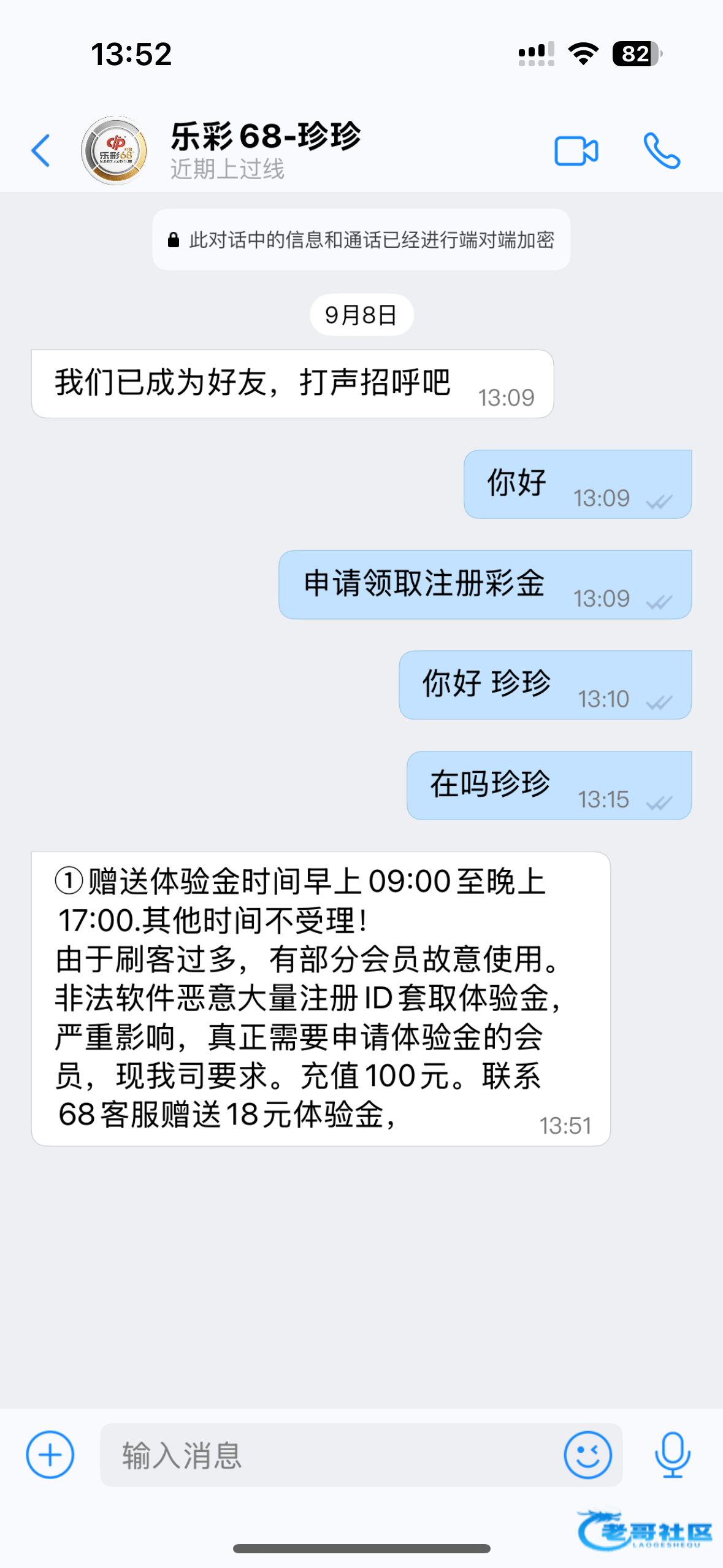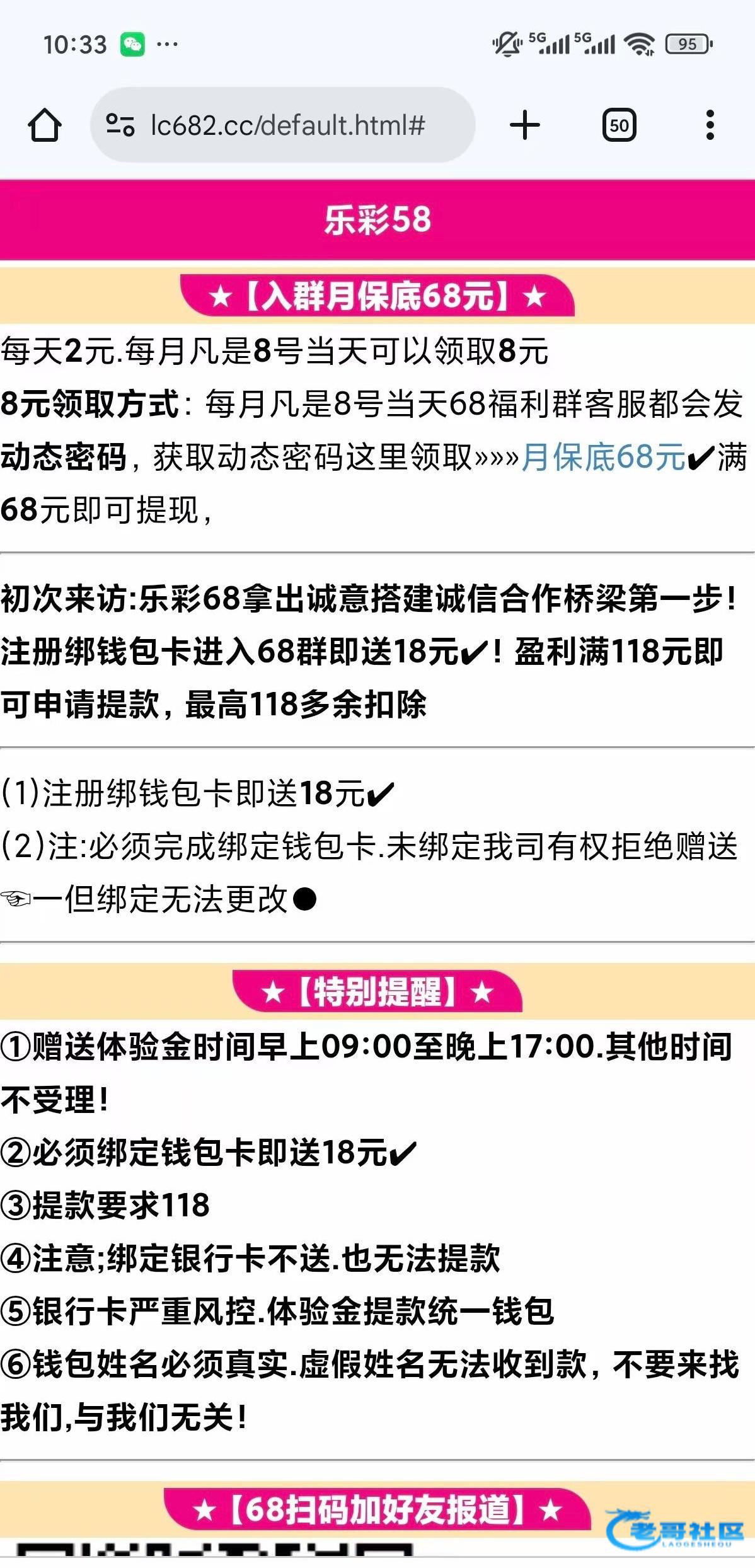 ①赠送体验金时间早上09:00至晚上17:00.其他时间不受理!由于刷客过多,有部分会员故意使用。非法软件恶意大量注册ID套取体验金,严重影响,真正需要申请体验金的会员,现我司要求。充值100元。联系68客服赠送18元体验金,②必须绑定钱包卡即送18元✔③提款要求118④注意;绑定银行卡不送.也无法提款⑤银行卡严重风控.体验金提款统一钱包⑥钱包姓名必须真实.虚假姓名无法收到款,不要来找我们,与我们无关!