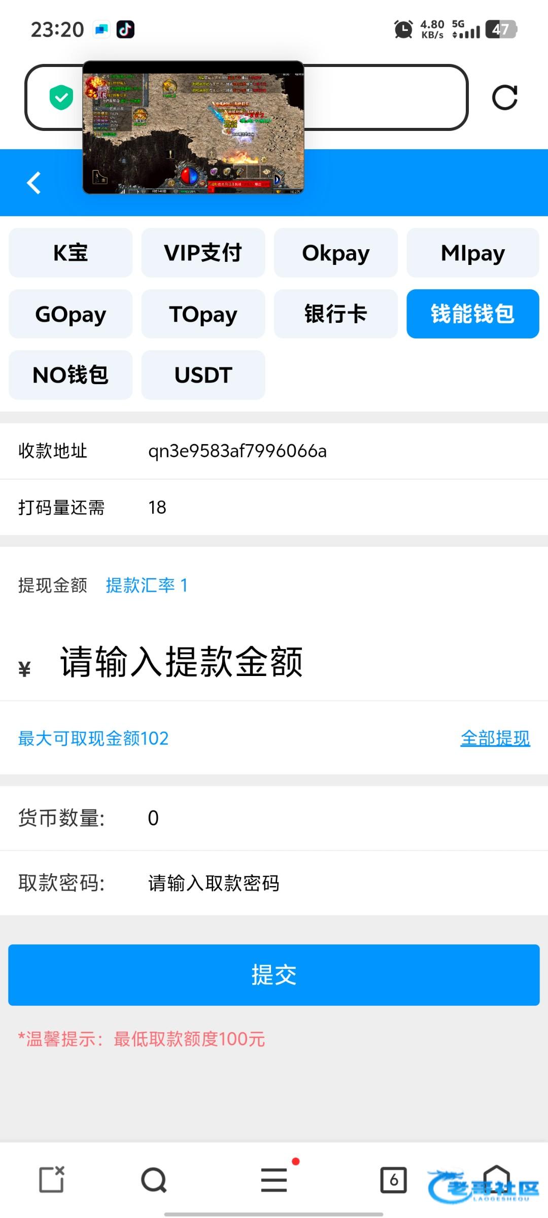 注册就送了18,梭哈两把提现了110不知道能不能到账,玩着是真卡这台子